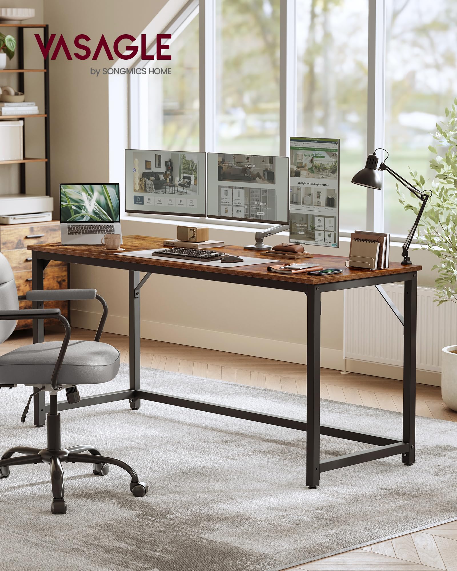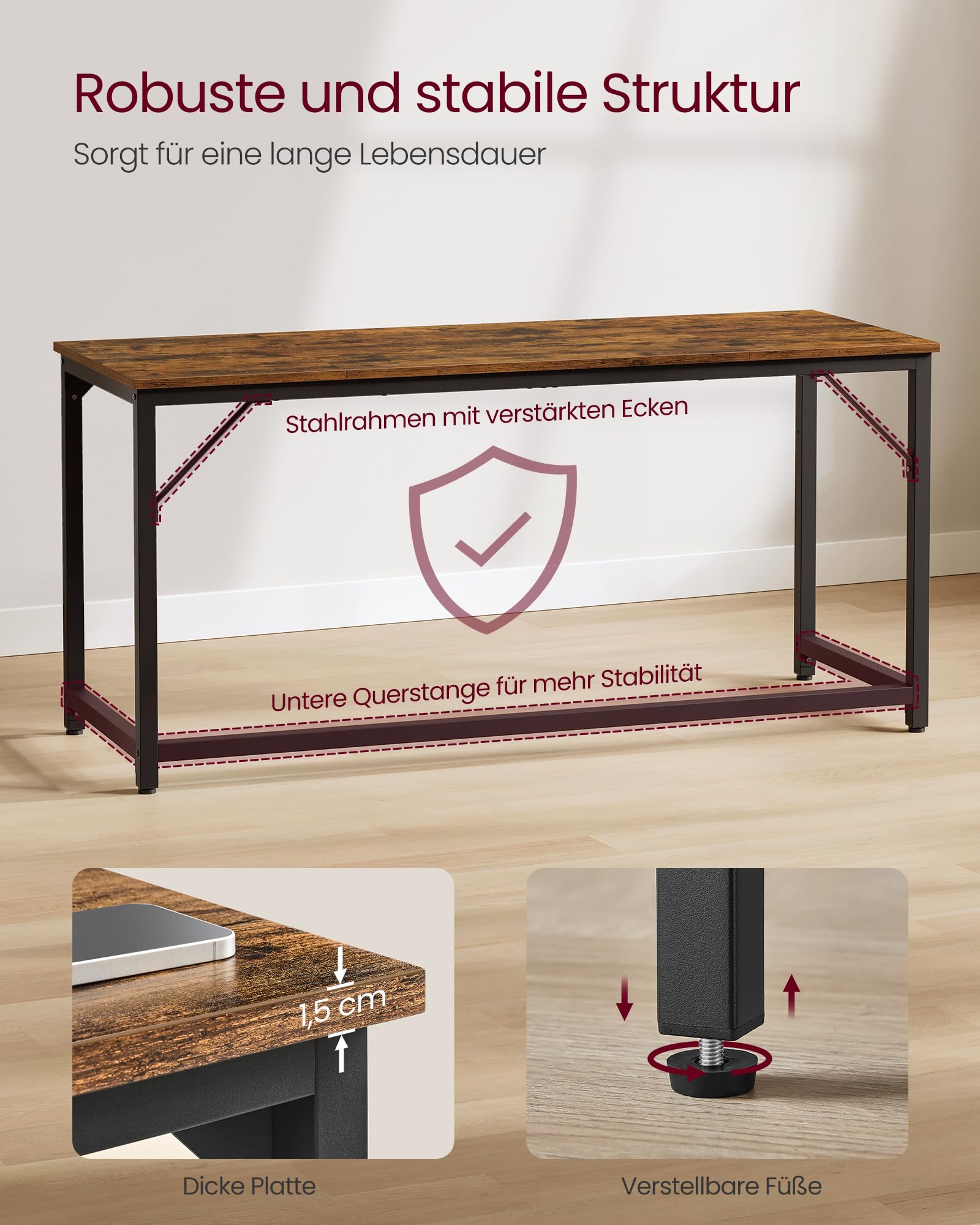 VASAGLE LWD121K01 Bürotisch 160x60 cm - Vintagebraun-Tintenschwarz