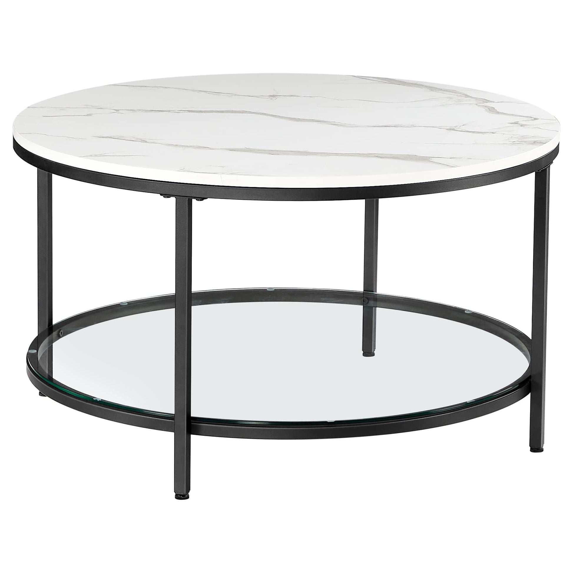 VASAGLE LCT071B13 Couchtisch mit Glasplatte - Marmorweiss-Tintenschwarz