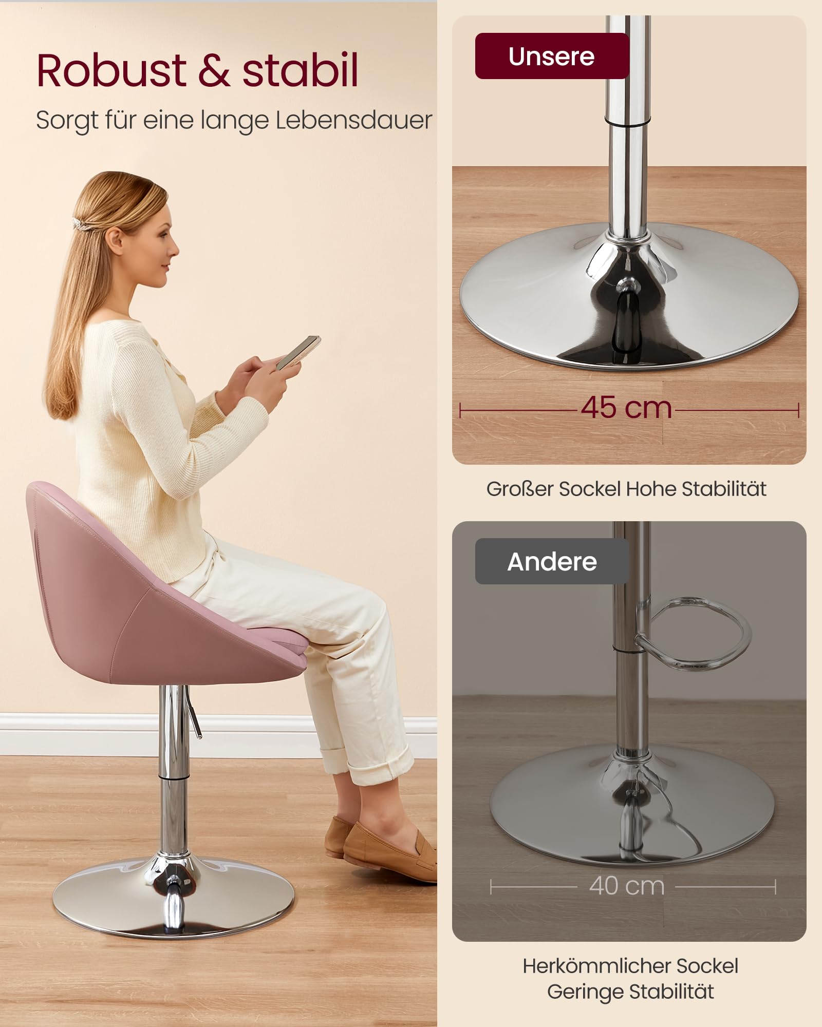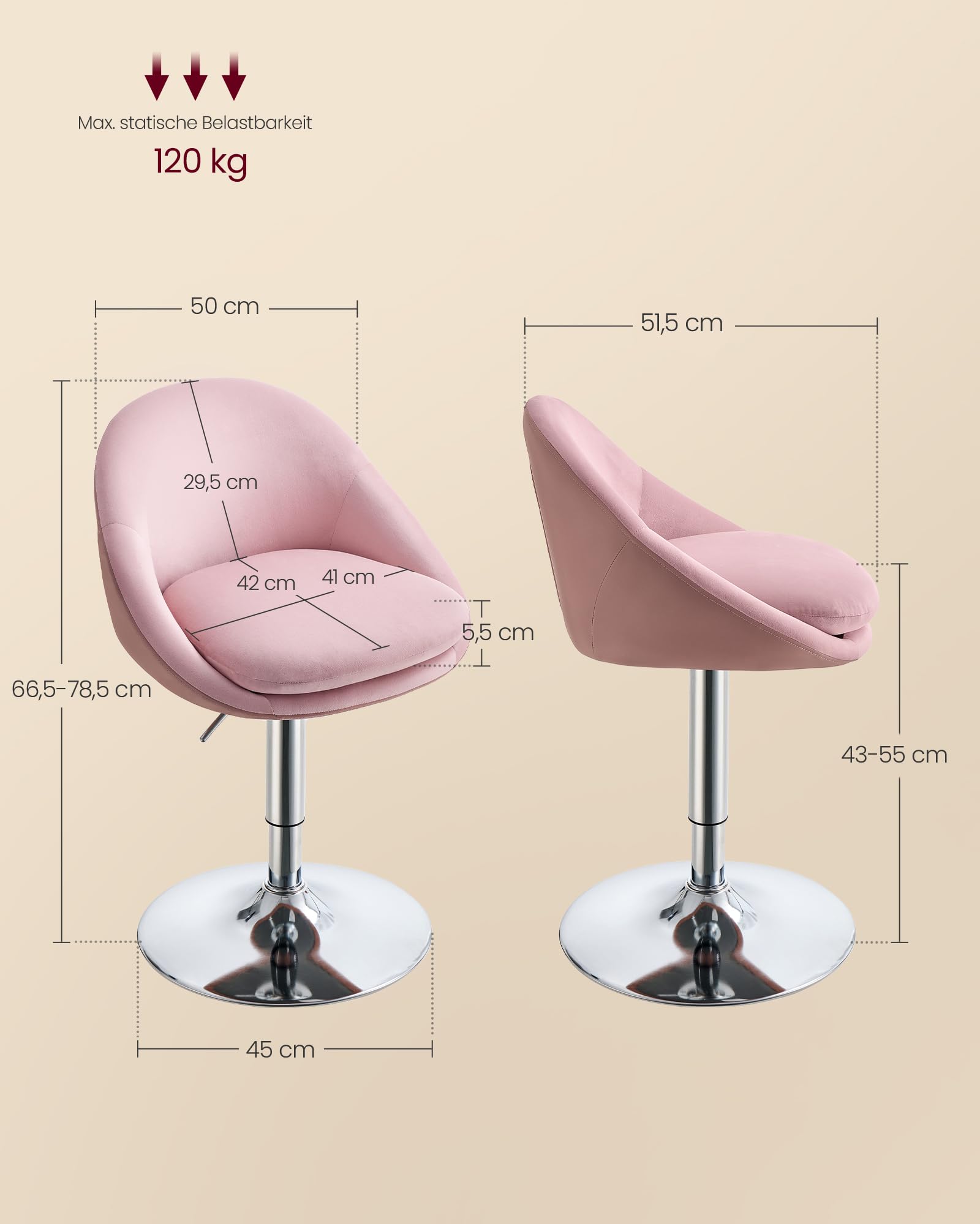Dieser vielseitige Stuhl in Pastellrosa ist ein echter Allrounder. Er eignet sich perfekt als bequemer Bürostuhl im Home-Office, als eleganter Schminkstuhl am Schminktisch oder als moderner Barhocker an Ihrer Küchentheke. Sein stilvolles Design fügt sich nahtlos in verschiedene Wohnbereiche ein.