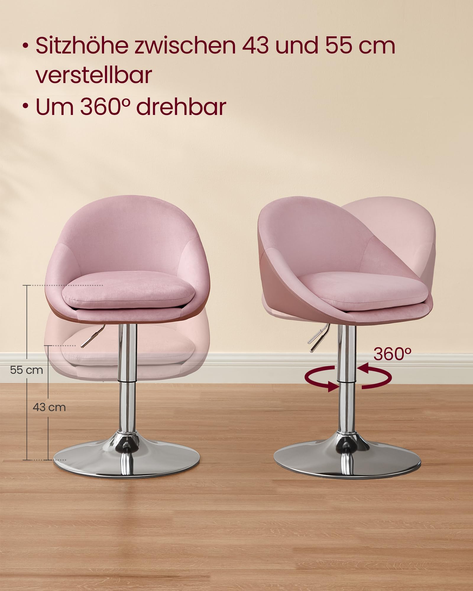 VASAGLE LJB100R01 Drehstuhl verstellbar – Pastellrosa
