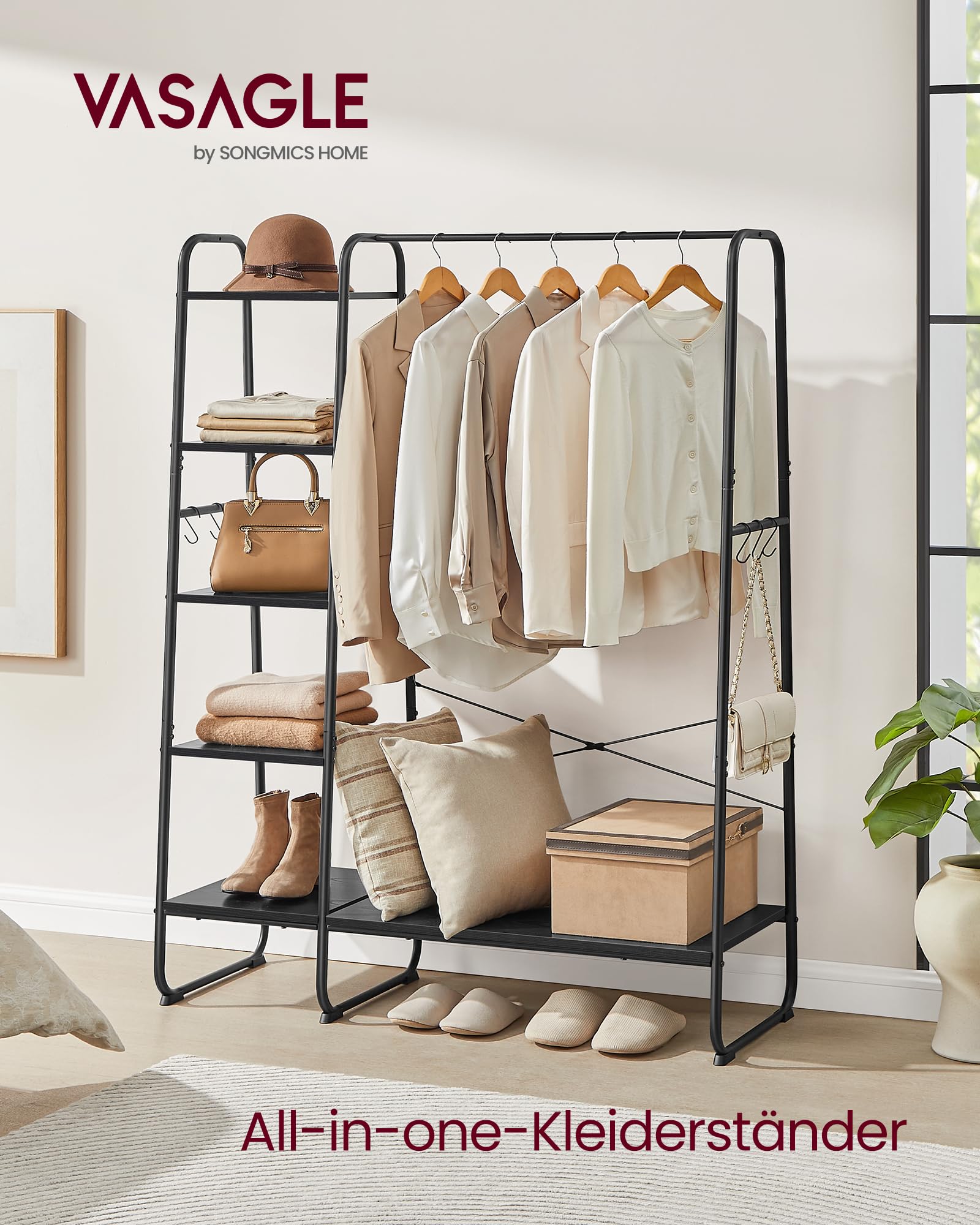 VASAGLE Kleiderständer RGR116B02 – Garderobe mit Schuhablage Schwarz