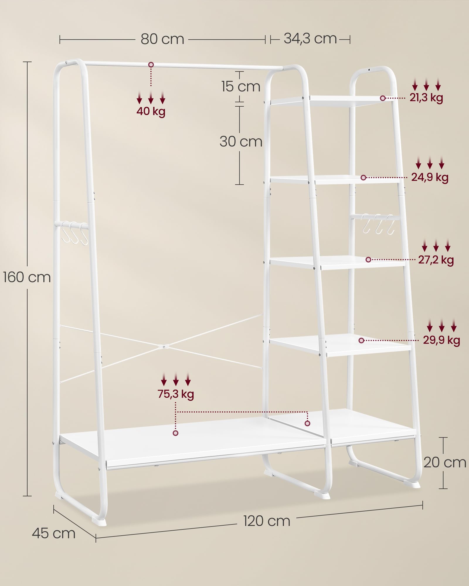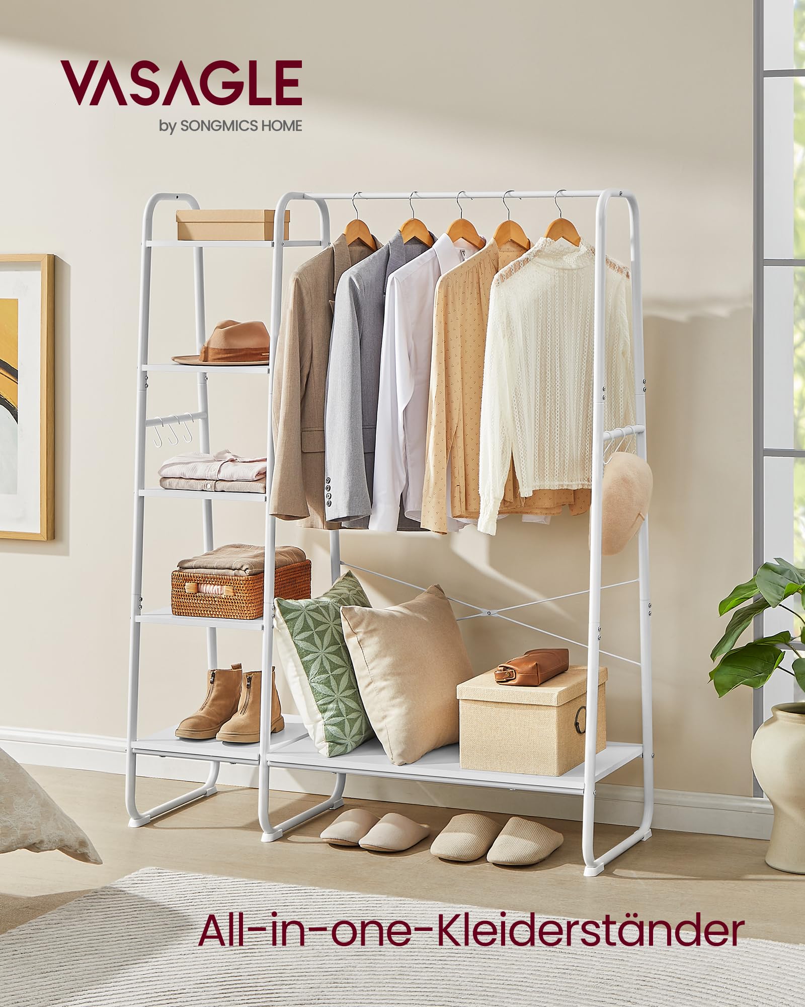VASAGLE Kleiderständer RGR116W02 mit Schuhablage – Wolkenweiss