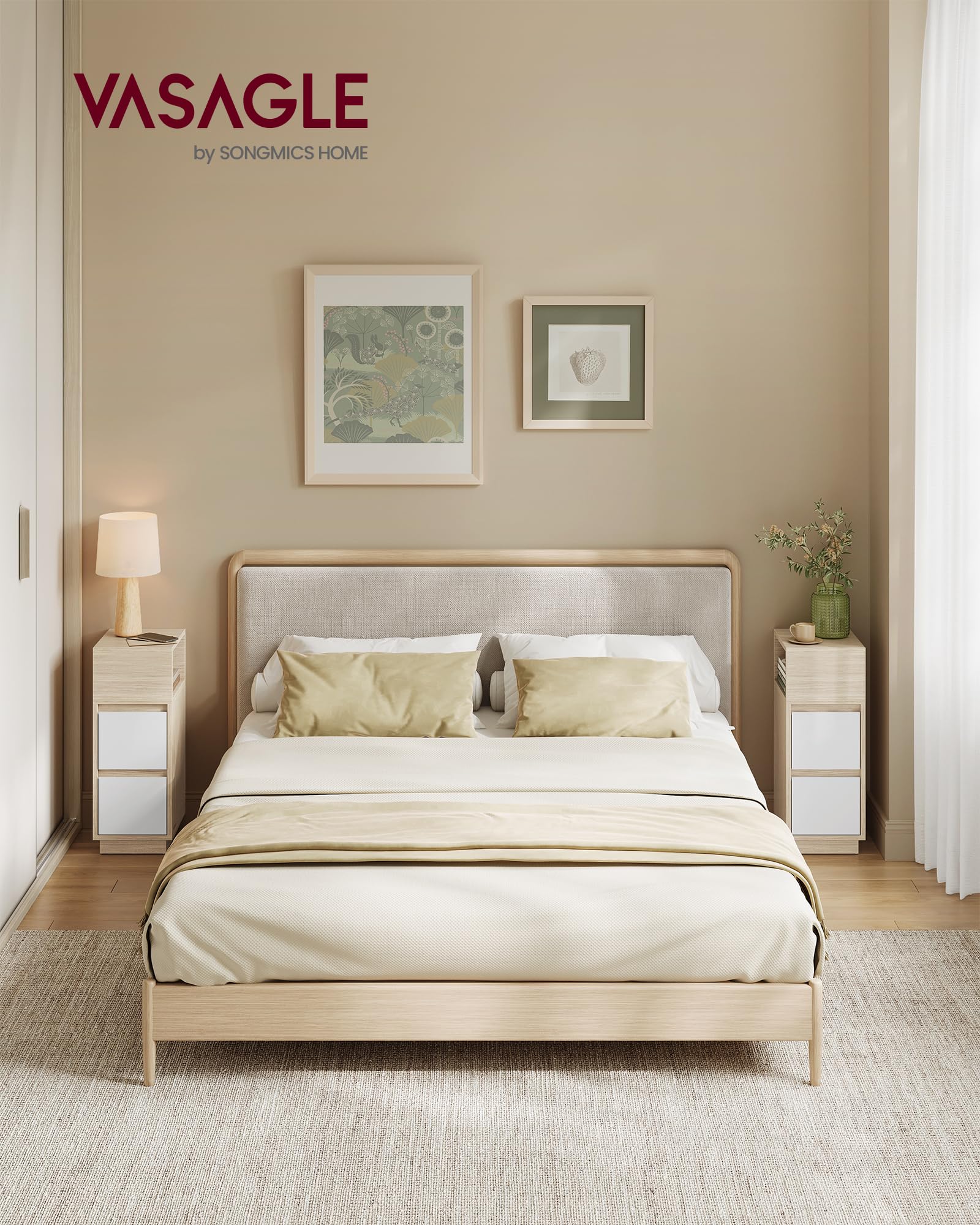 VASAGLE Nachttisch 2er Set, 2 Schubladen, Naturbeige-Weiss LET856N01