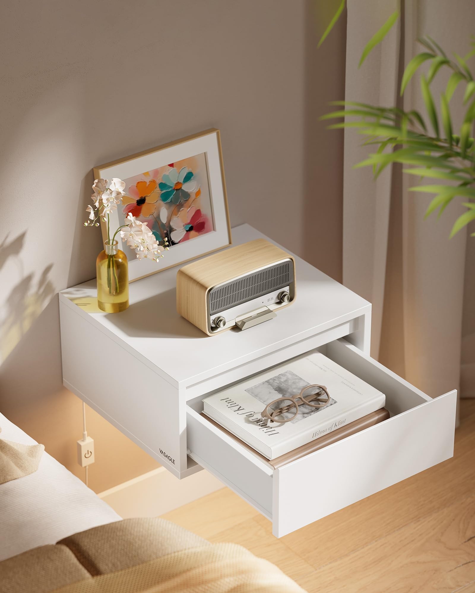 Dieses 2er-Set schwebender Nachttische von VASAGLE verbindet modernes Design mit durchdachter Funktionalität. Die wandmontierten Konsolen mit integrierter Beleuchtung sind eine stilvolle und platzsparende Ergänzung für jedes Schlaf- oder Wohnzimmer.