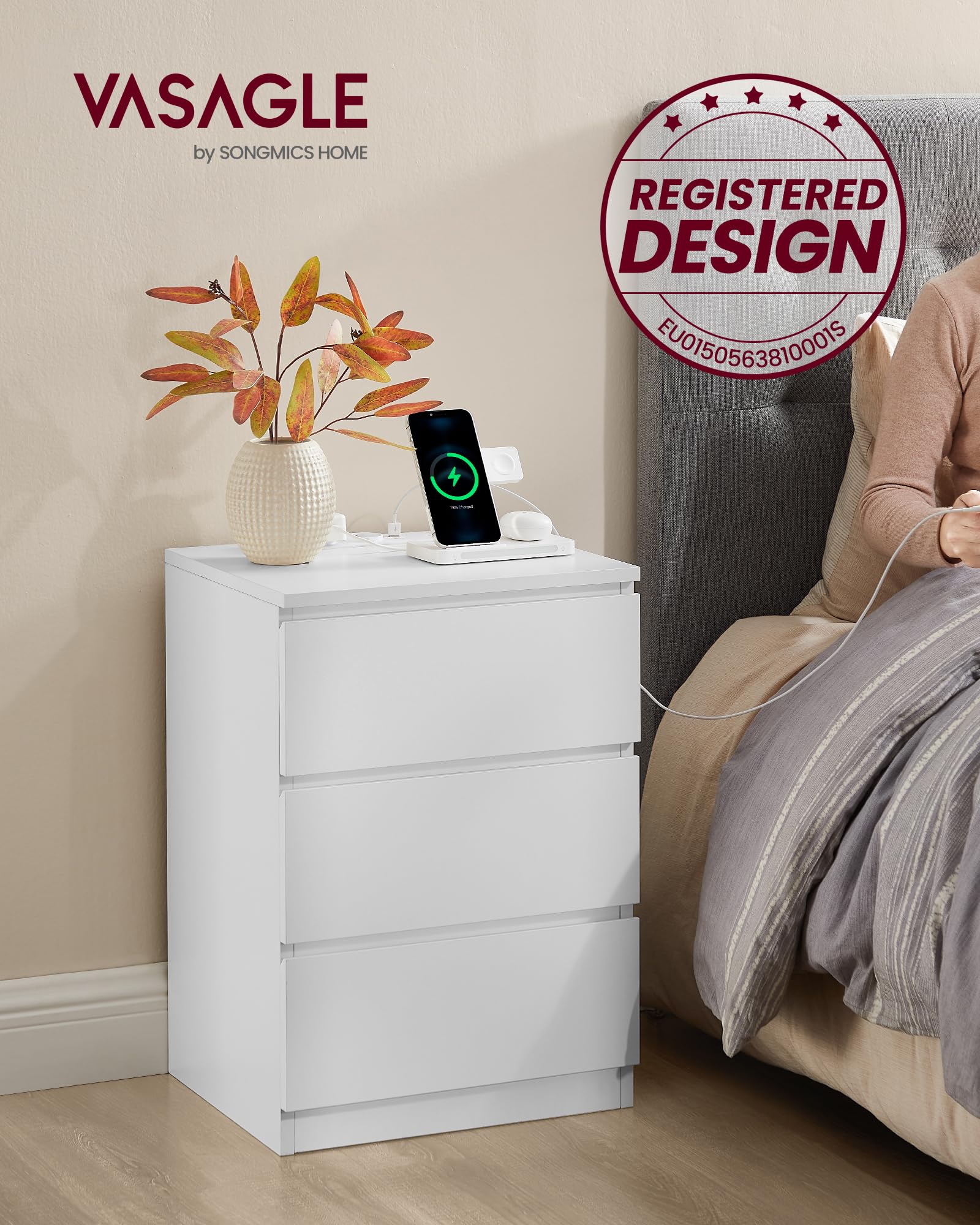 VASAGLE Kailyn Nachttisch Steckdosenleiste – 2er Set wolkenweiss