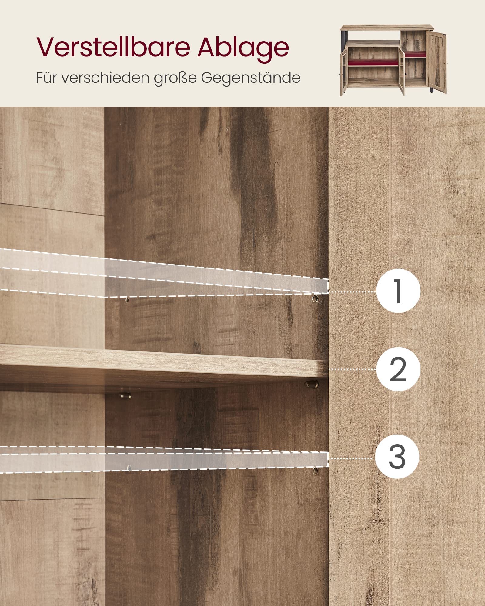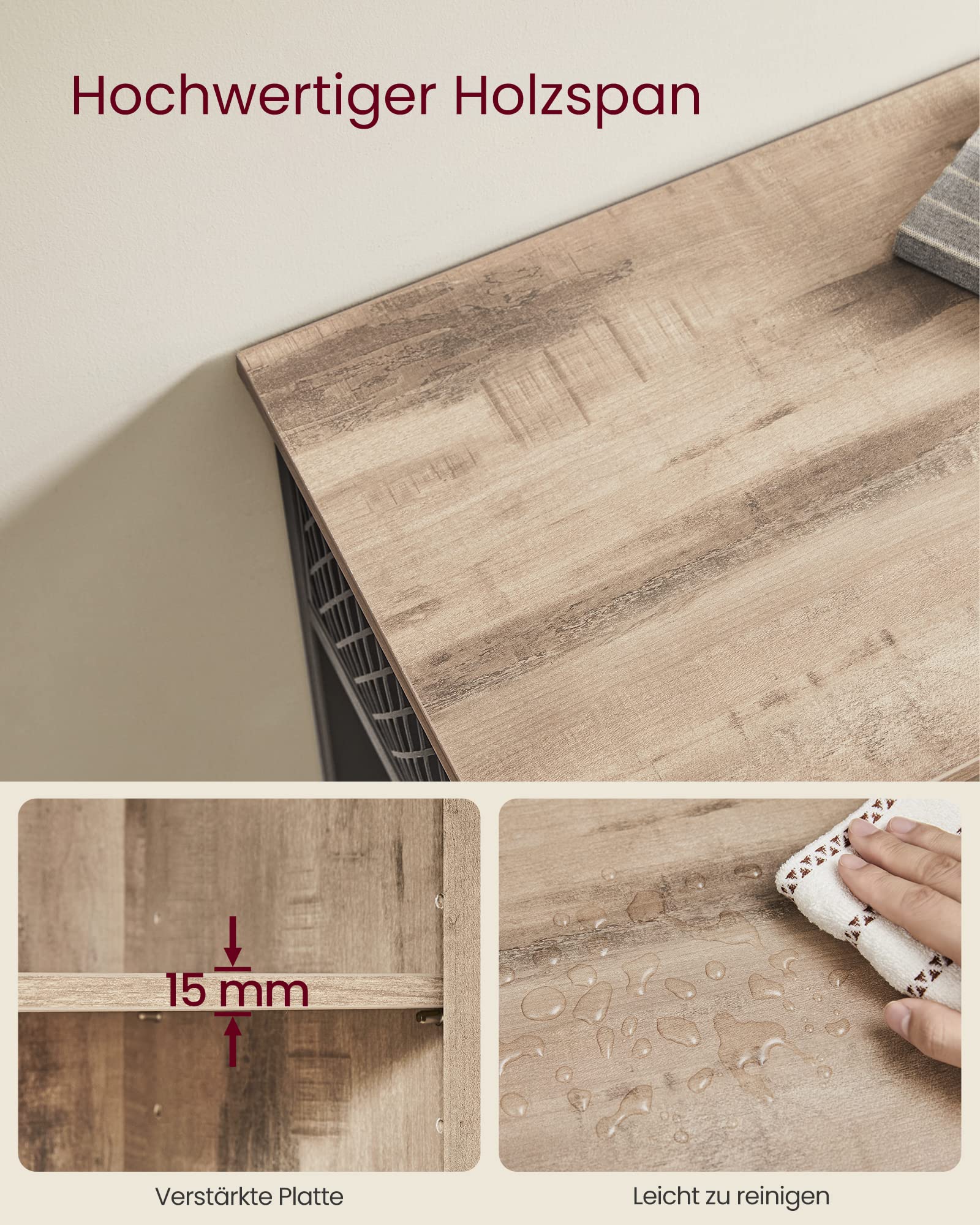 VASAGLE Sideboard Landhaus 3 Türen eichenbraun-schwarz LSC096B50