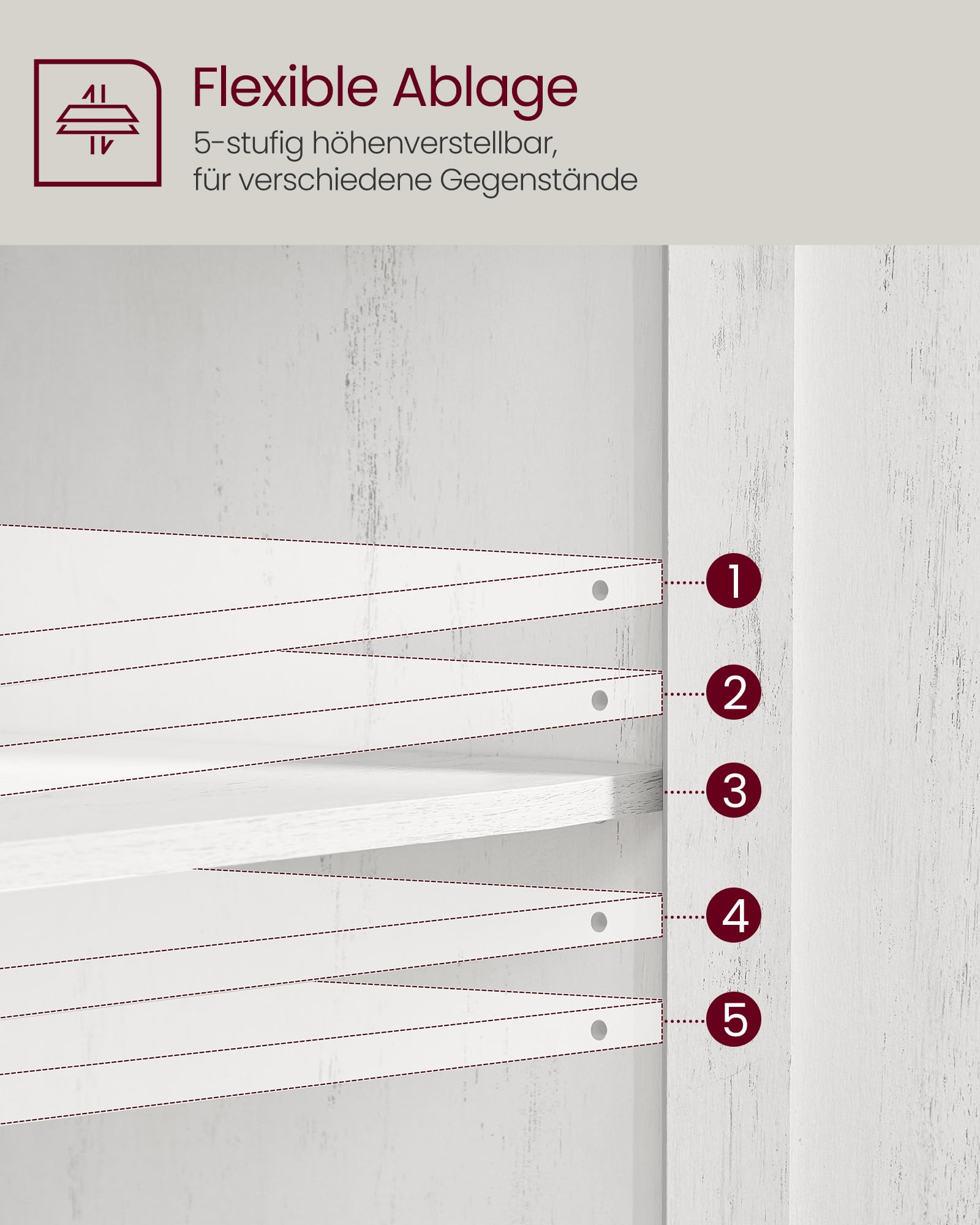 - Vielseitiges Design: Die stilvolle Farbkombination aus Vintageweiss und Honigbraun sowie die einzigartigen Türen machen es zum Hingucker in Wohnzimmer, Küche oder Eingangsbereich.