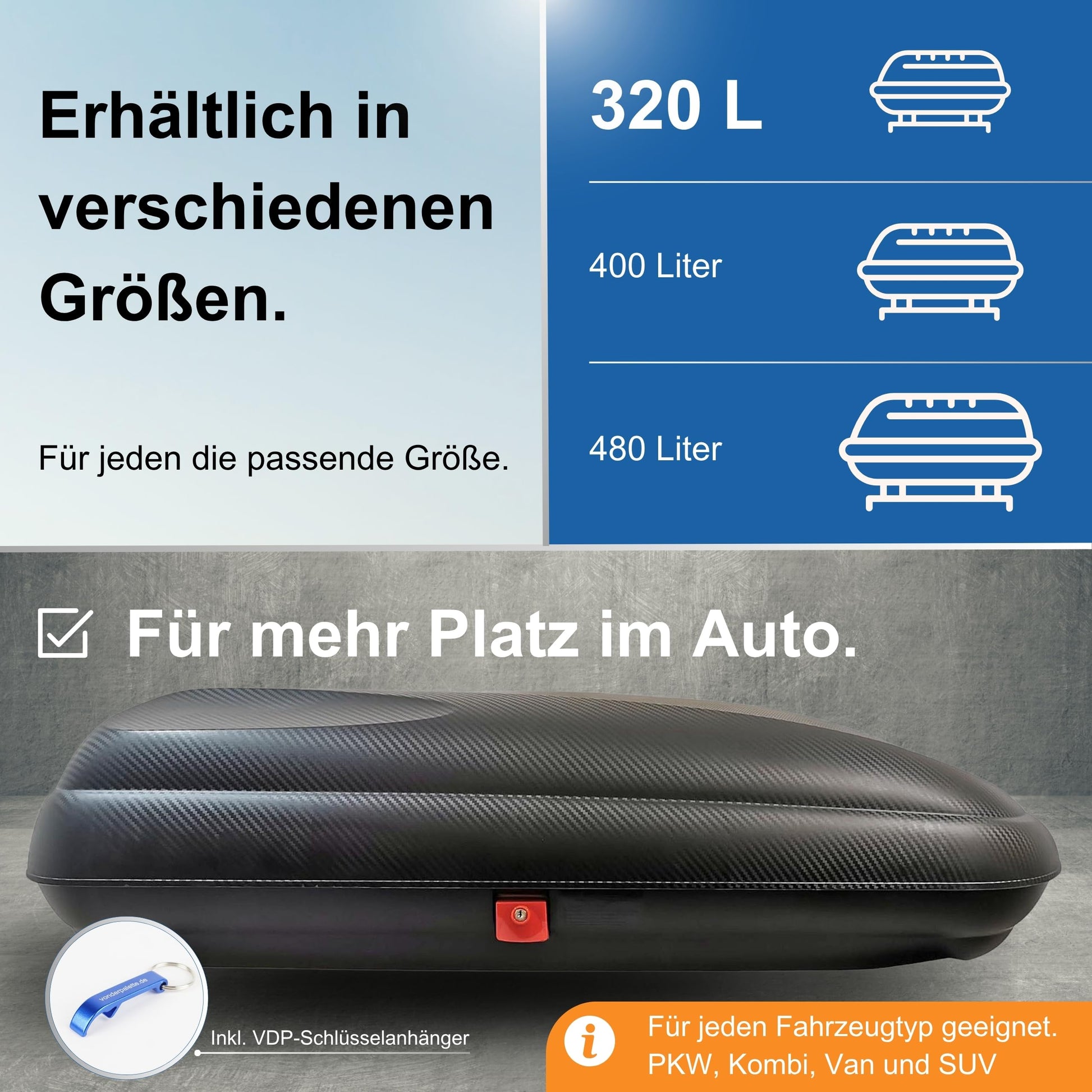 VDP BA320 Dachkoffer 320 Liter Volumen für Autos - Carbon Optik