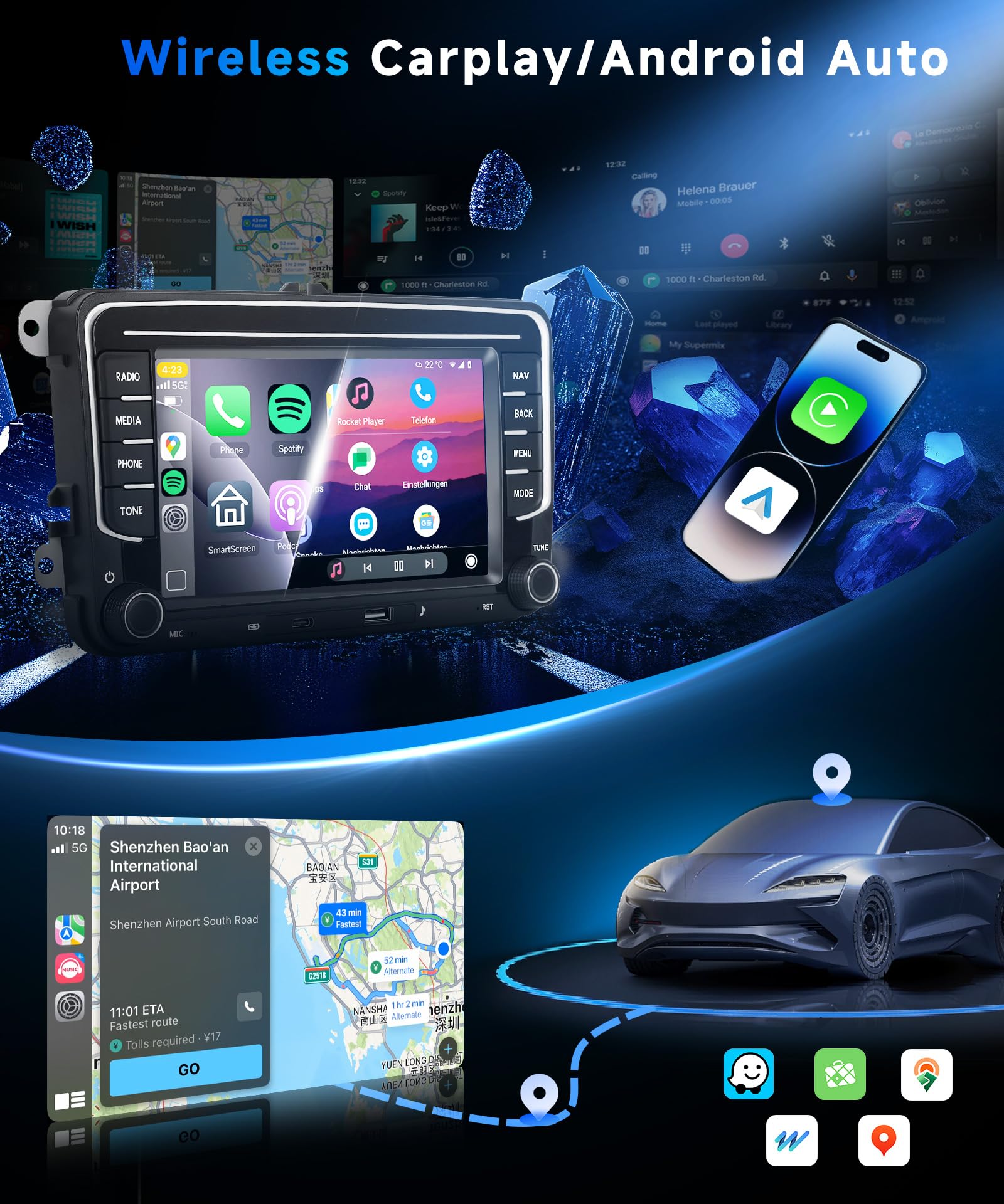 - Drahtlose Konnektivität: Integriertes drahtloses Apple CarPlay und Android Auto für eine smarte Smartphone-Anbindung. Zusätzlich ausgestattet mit Wi-Fi, Bluetooth, einem TYP-C-Anschluss und zwei USB-Schnittstellen.