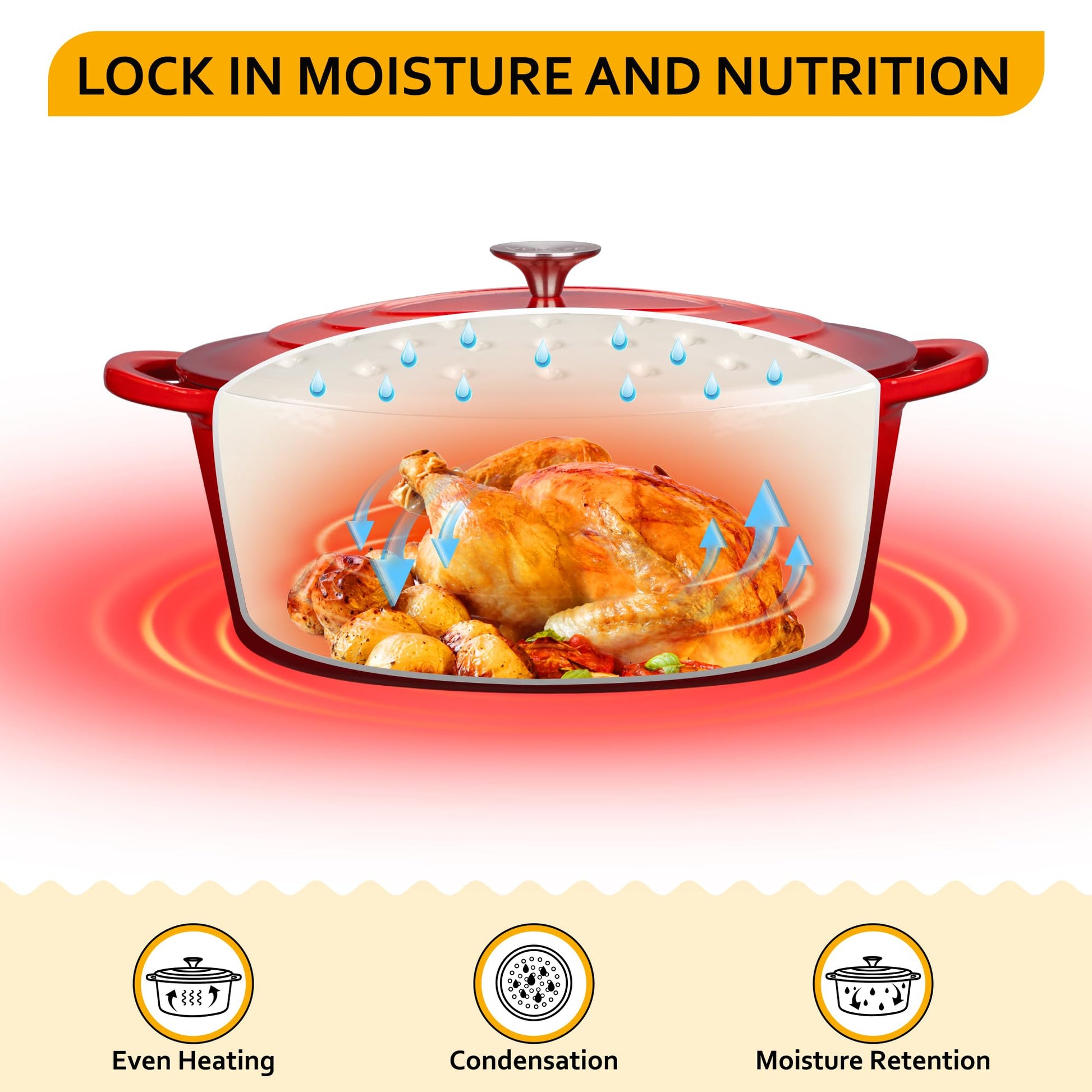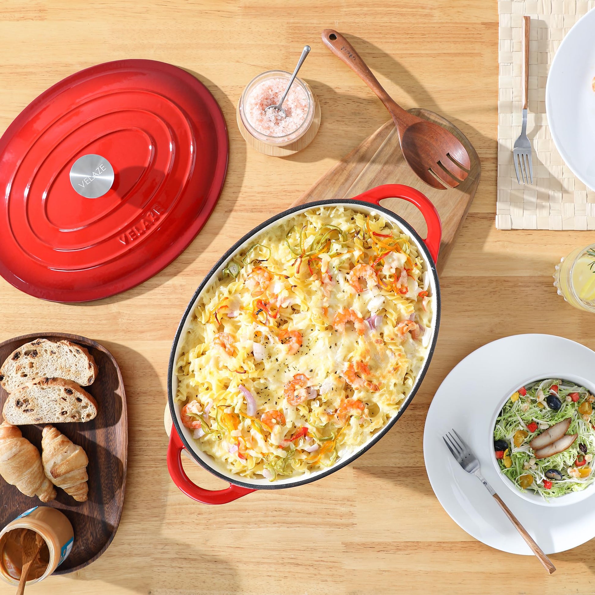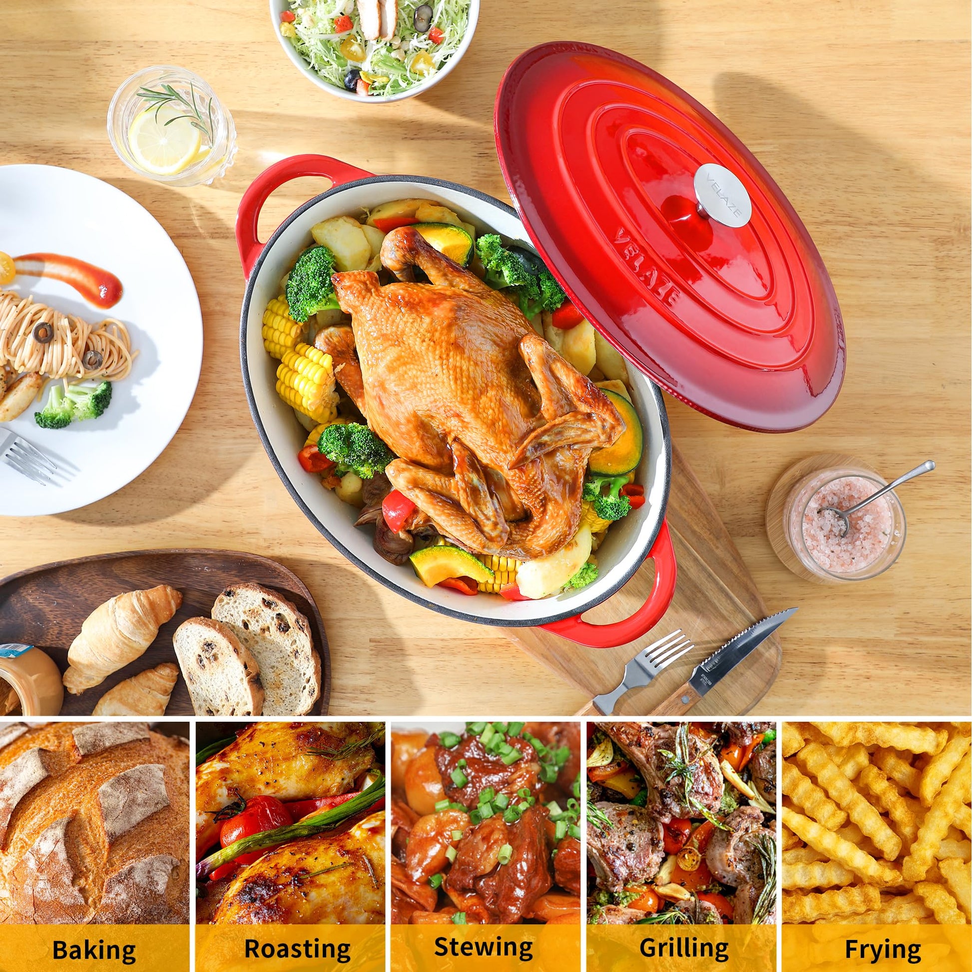 Velaze Ovaler Gusseisen Bräter Emaille 34cm 7L – mit Deckel