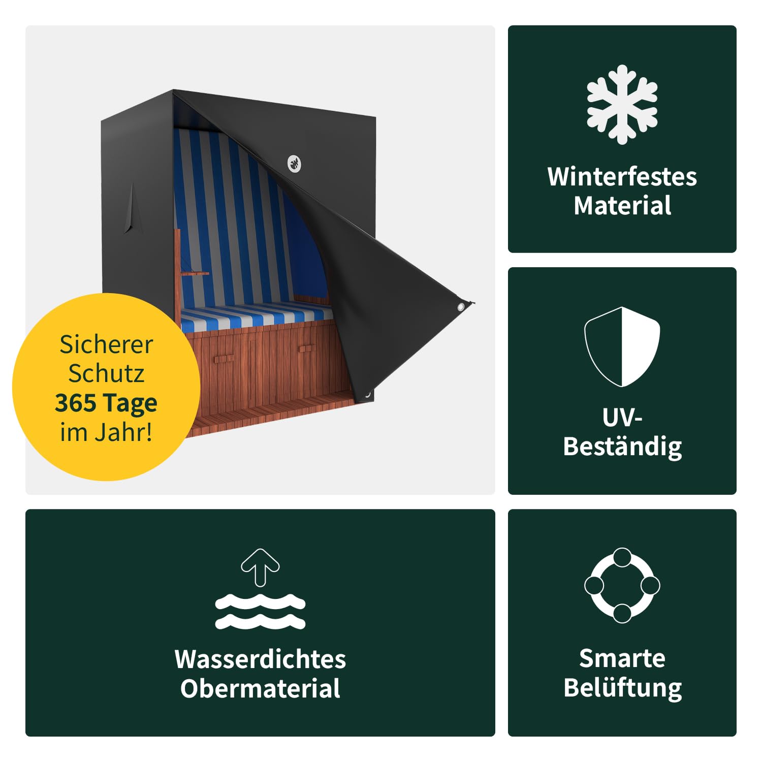 Die VERDOBA Schutzhülle ist die ideale Wahl für einen ganzjährigen, verlässlichen Schutz Ihres wertvollen Strandkorbes.