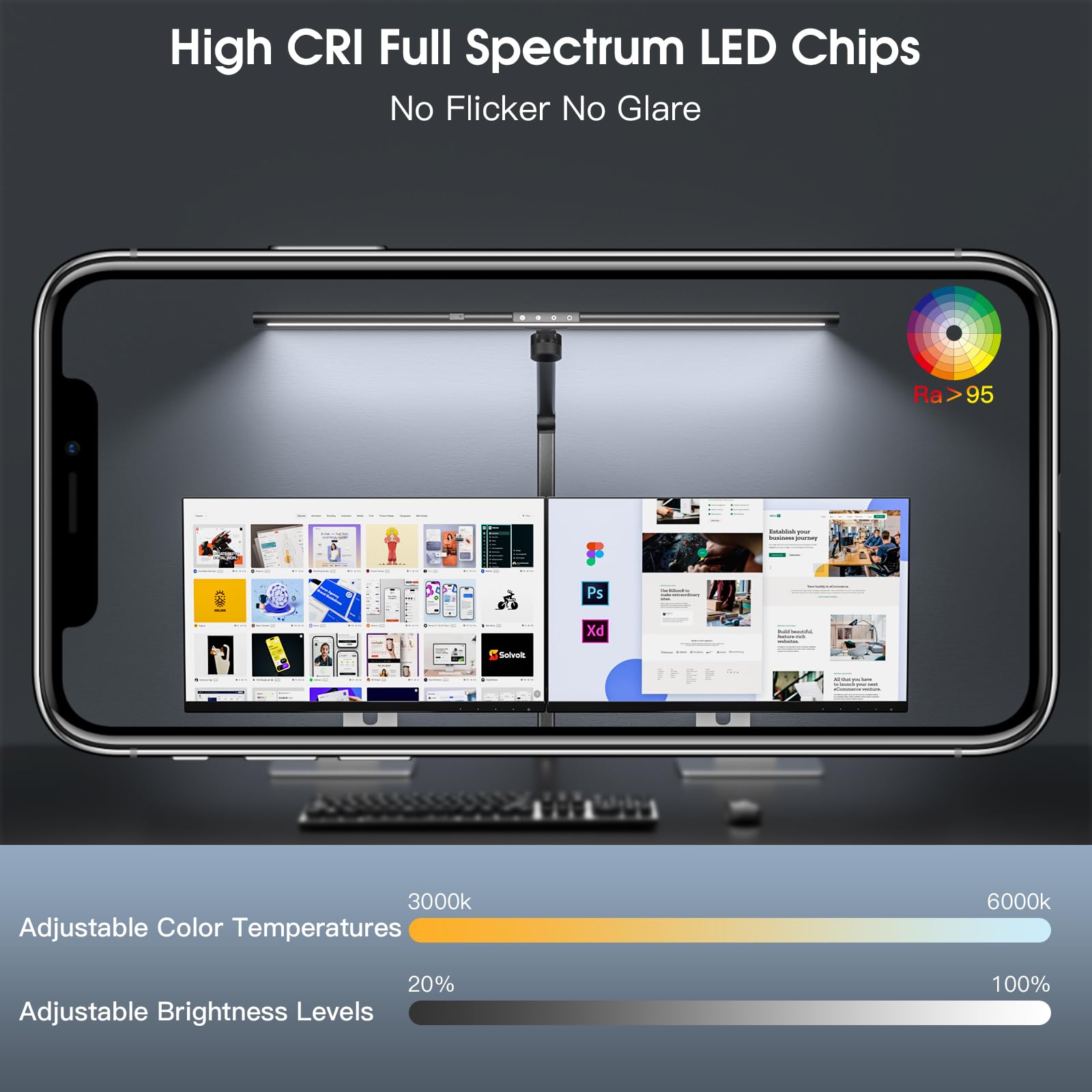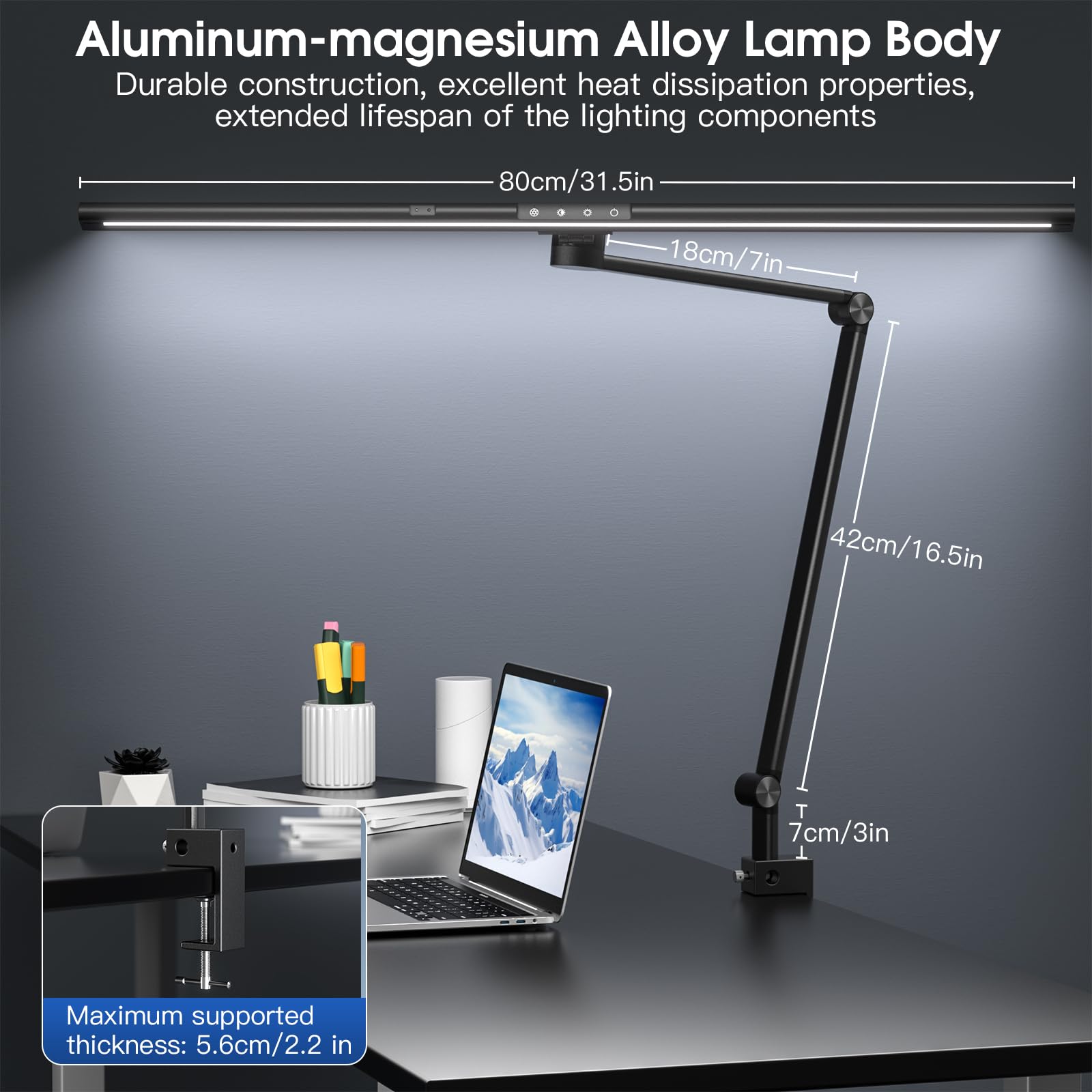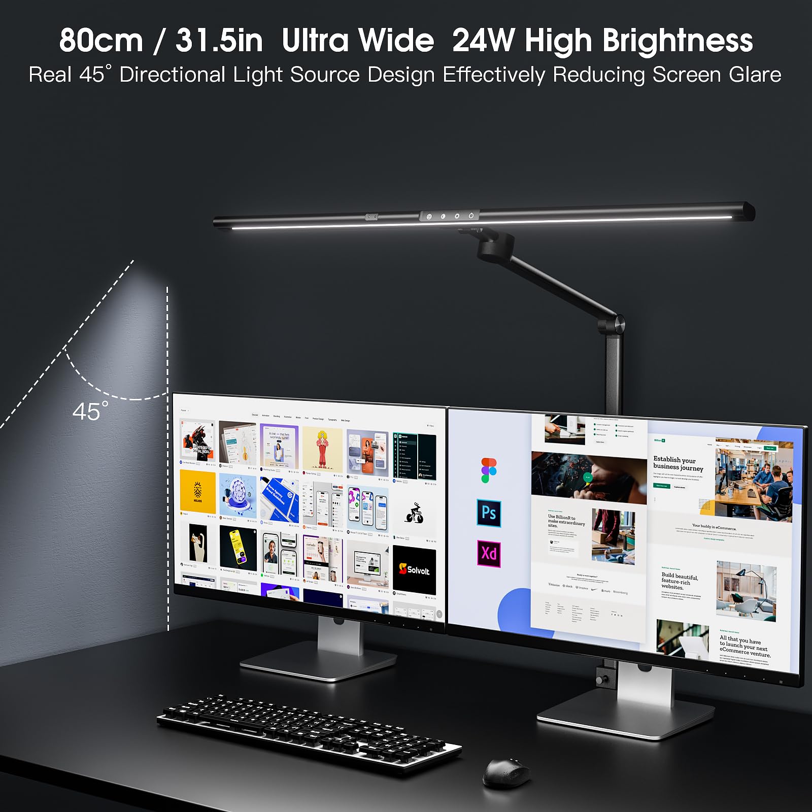 Sie ist ideal für moderne Arbeitsplätze, insbesondere im Homeoffice mit grossen oder zwei Monitoren. Ihre extra breite 80-cm-Leuchteinheit sorgt für eine vollständige und gleichmässige Ausleuchtung der gesamten Arbeitsfläche, was die Ermüdung der Augen deutlich reduziert.