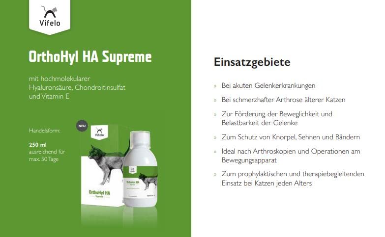VetVital Viequo OrthoHyl HA Supreme ist ein Ergänzungsfuttermittel, das gezielt entwickelt wurde, um die Belastungsfähigkeit der Gelenke, Sehnen und Bänder bei Hunden jeder Rasse und jeden Alters zu fördern.