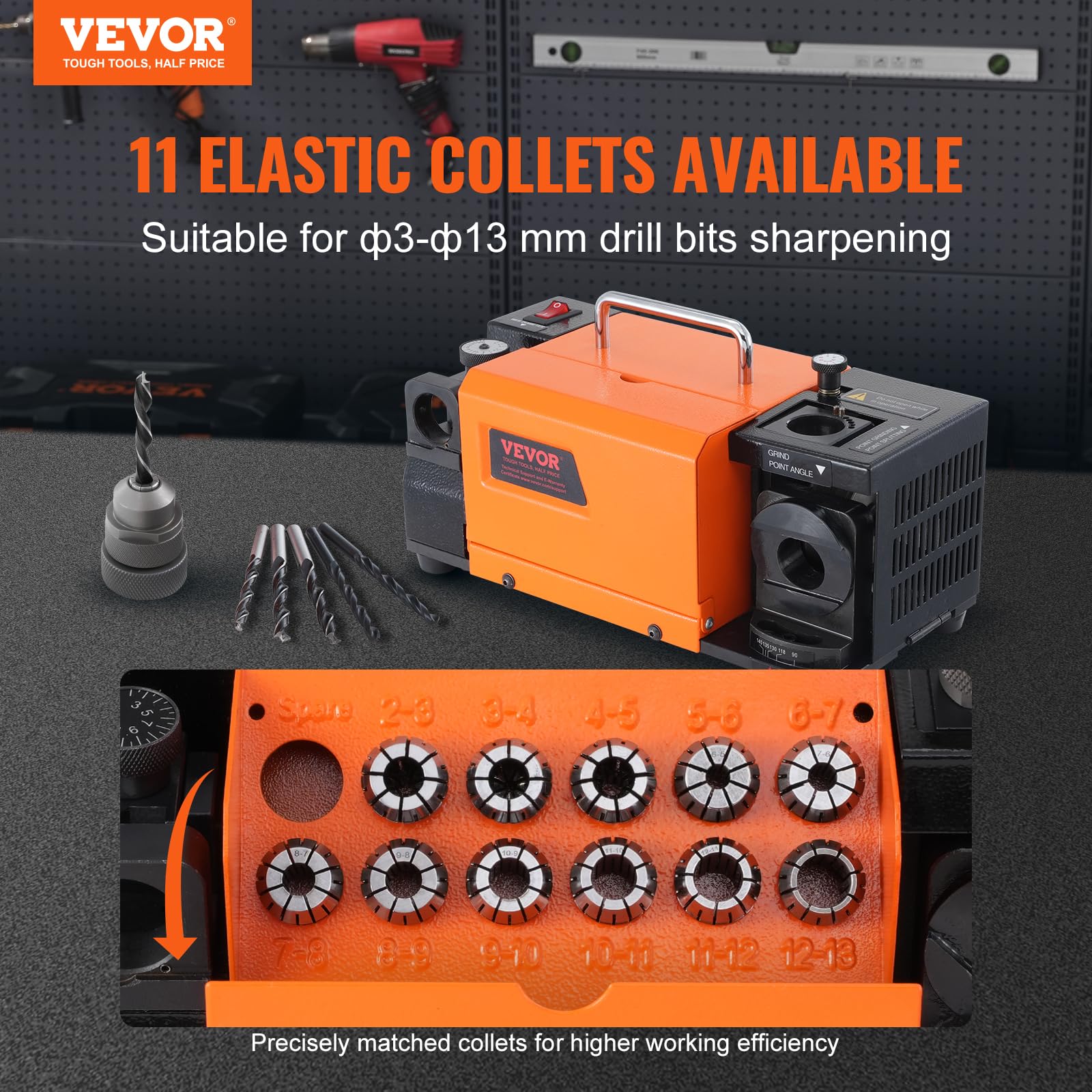 - Präzises Schärfen: Ausgestattet mit 11 elastischen Spannzangen für alle gängigen Bohrergrössen mit einem Durchmesser von 3 mm bis 13 mm.