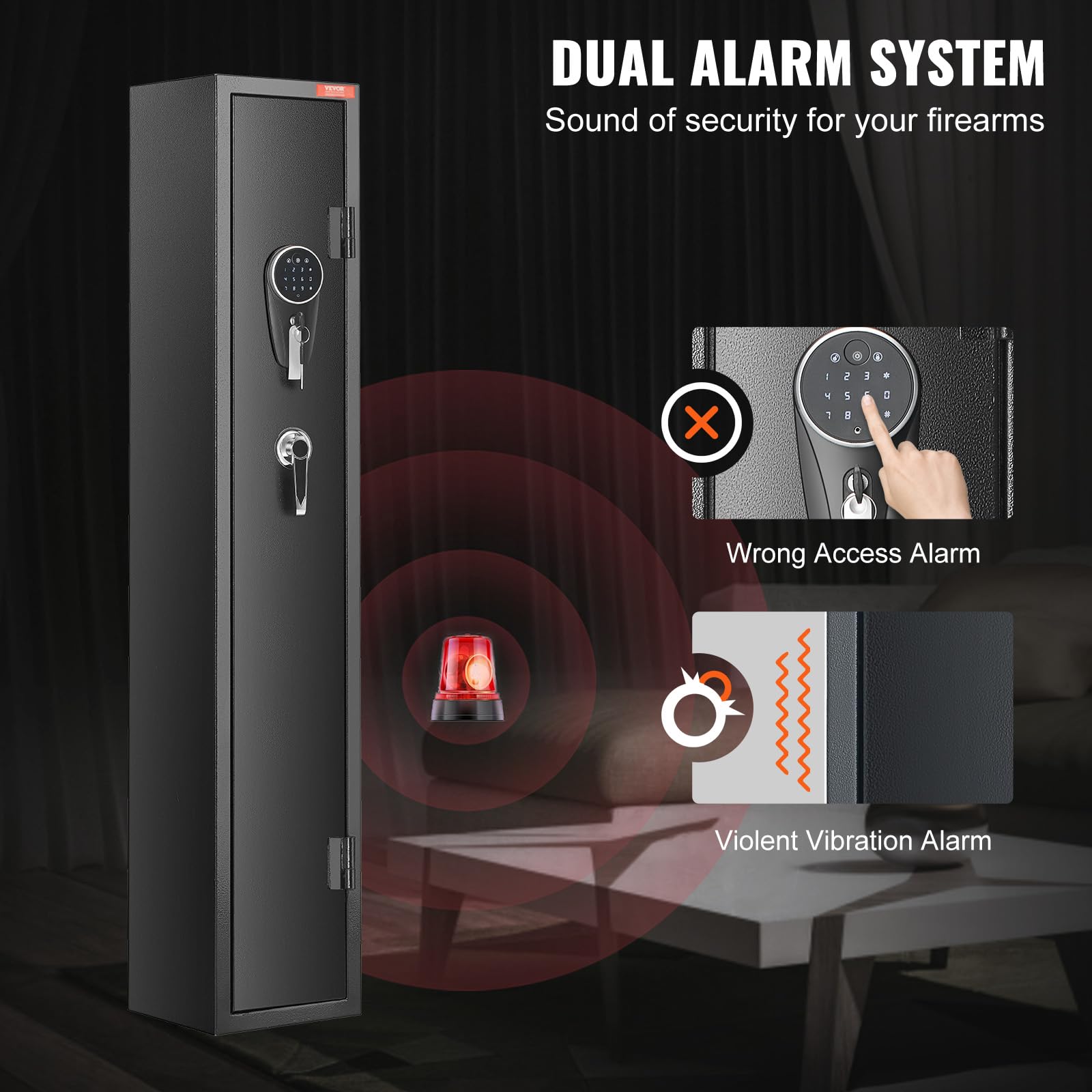 Dieser robuste Waffenschrank von VEVOR bietet eine hochmoderne und sichere Lösung für die Aufbewahrung Ihrer Lang- und Kurzwaffen. Er kombiniert eine massive Bauweise mit intelligenter Zugriffstechnologie, um Ihre Waffen zuverlässig vor unbefugtem Zugriff zu schützen.