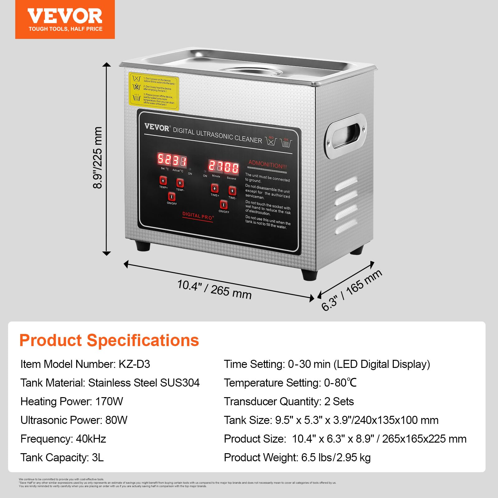 VEVOR Ultraschallreiniger 3L 150W Edelstahl mit Digitalanzeige