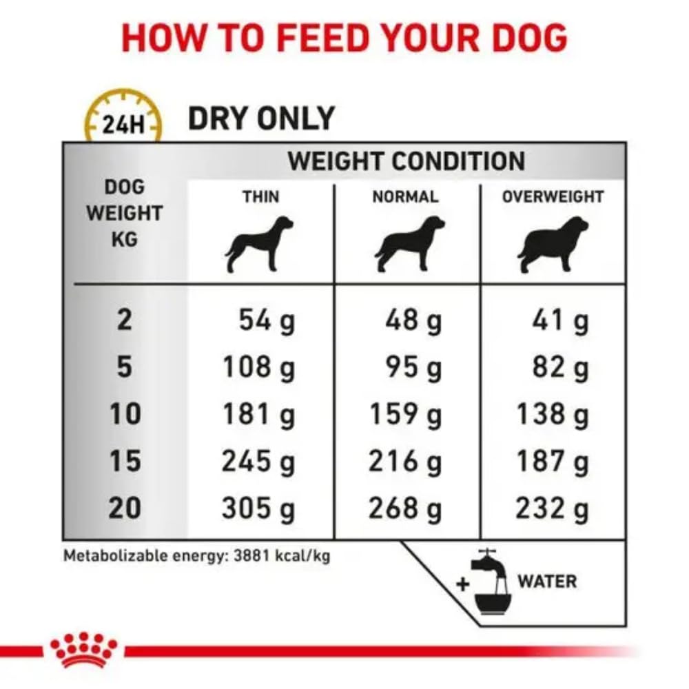Die Fütterung sollte idealerweise in Absprache und nach Empfehlung Ihres Tierarztes erfolgen. Bitte stellen Sie sicher, dass Ihrem Hund jederzeit frisches Trinkwasser zur Verfügung steht.