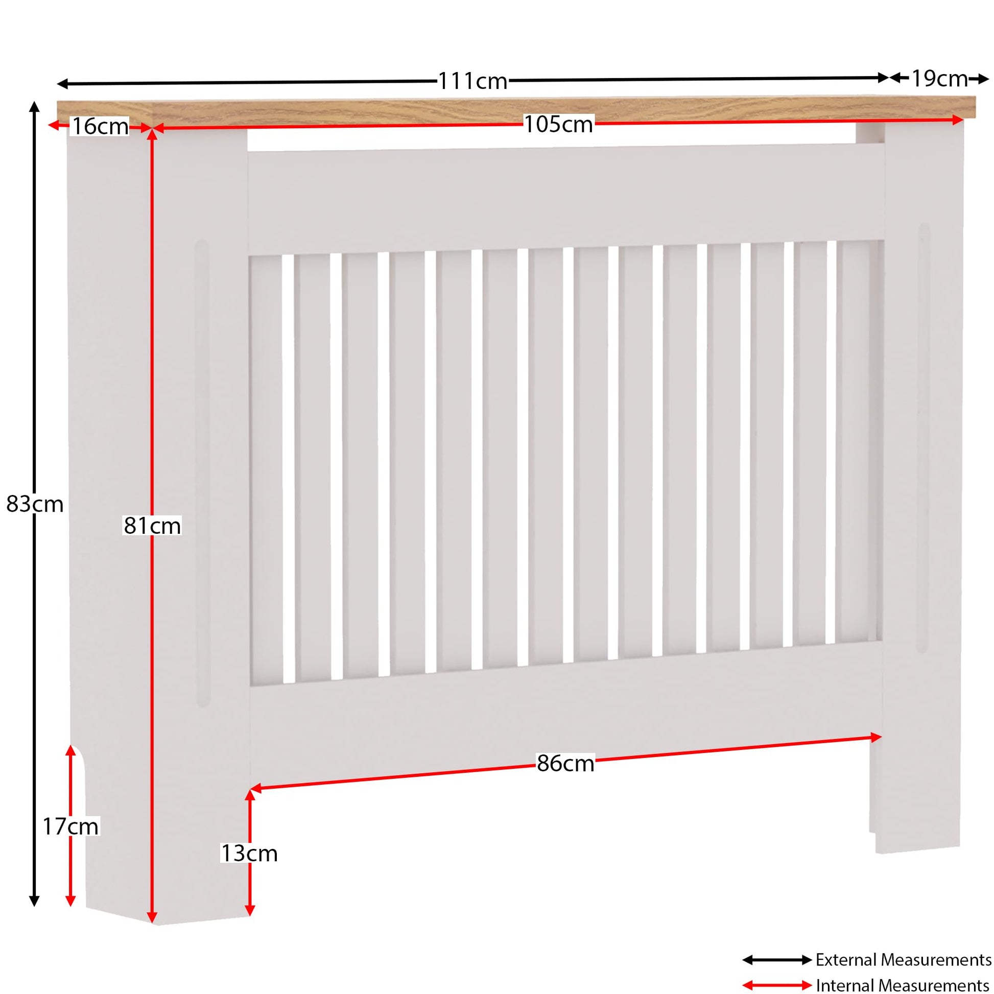 Bitte messen Sie Ihren Heizkörper vor der Bestellung sorgfältig aus. Um eine passende Montage zu gewährleisten, müssen die Aussenmasse Ihres Heizkörpers kleiner sein als die Innenmasse der Abdeckung.