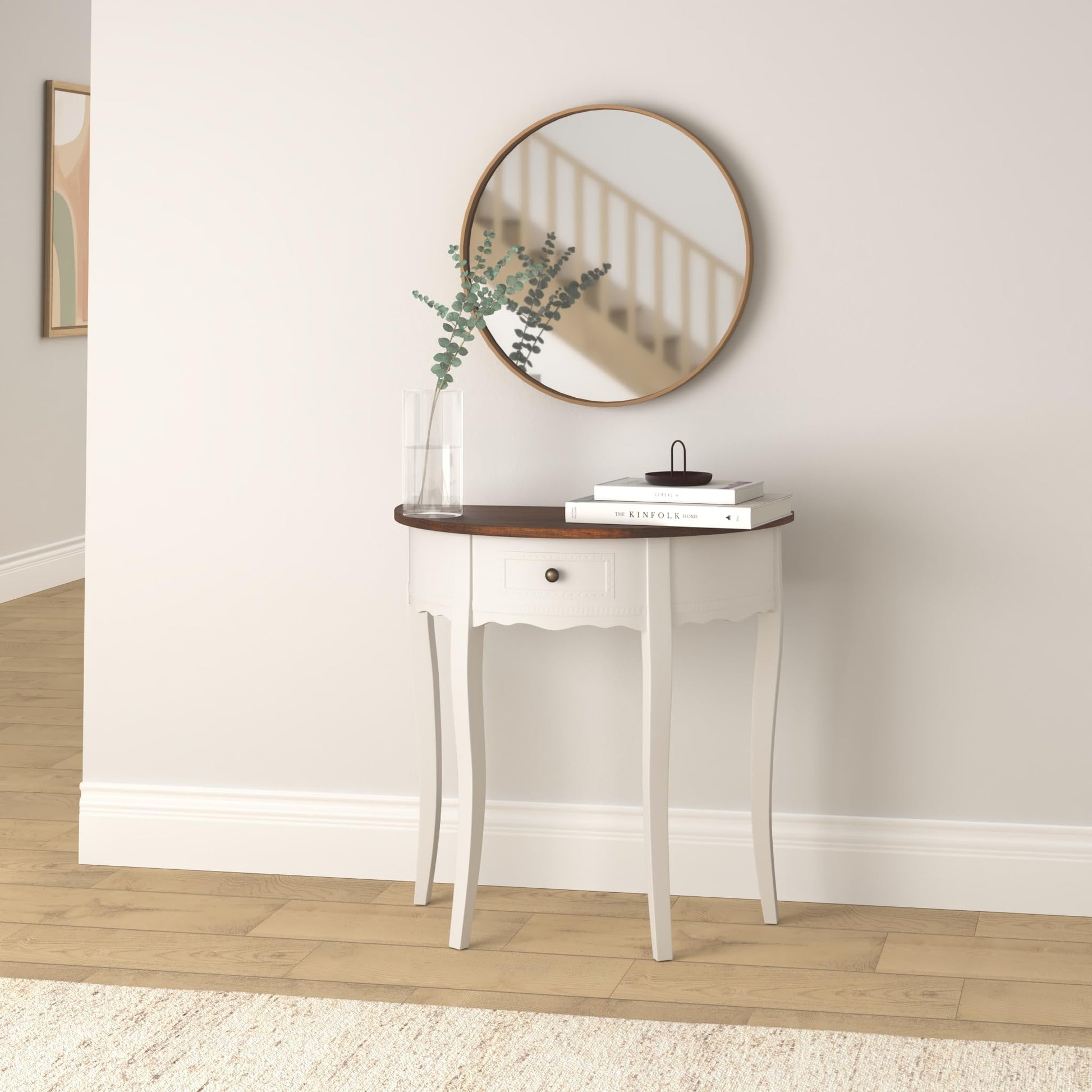 - Kompakte Form: Die halbrunde Gestaltung macht den Tisch ideal für schmale Räume wie Korridore oder Dielen.