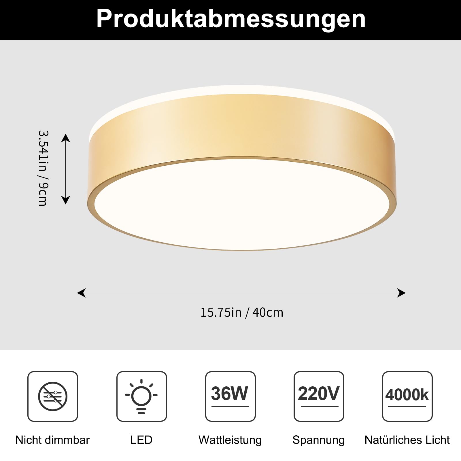 Diese moderne LED-Deckenlampe vereint ein elegantes, goldenes Design mit einer leistungsstarken und naturnahen Beleuchtung für Ihr Zuhause. Sie ist die ideale Lösung, um Wohn- und Funktionsbereiche hell und freundlich zu gestalten.