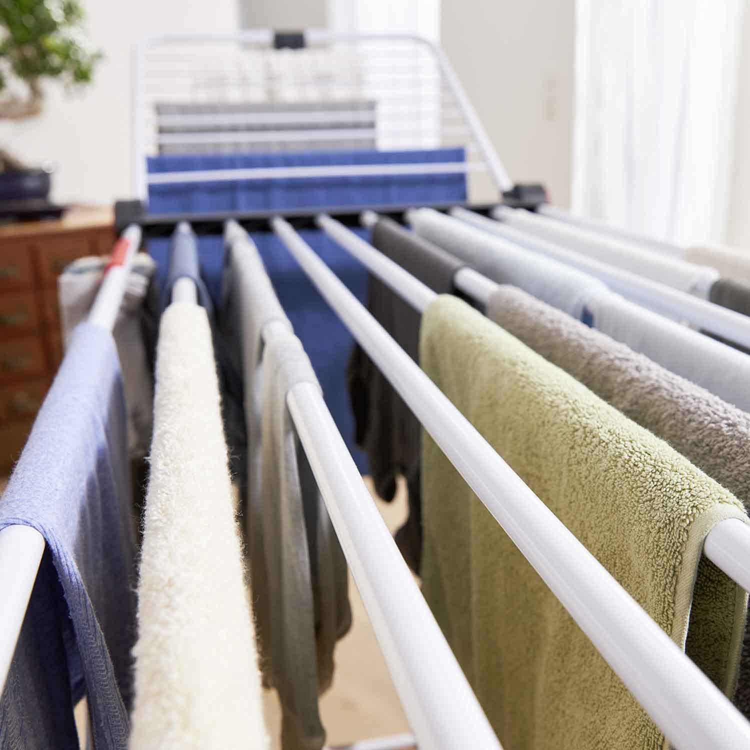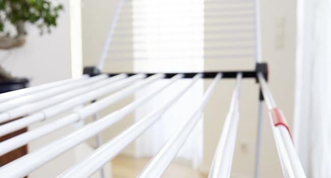 - Kompakt zusammenklappbar: Nach dem Gebrauch lässt sich der Trockner einfach und platzsparend in einer Nische oder Abstellkammer verstauen.