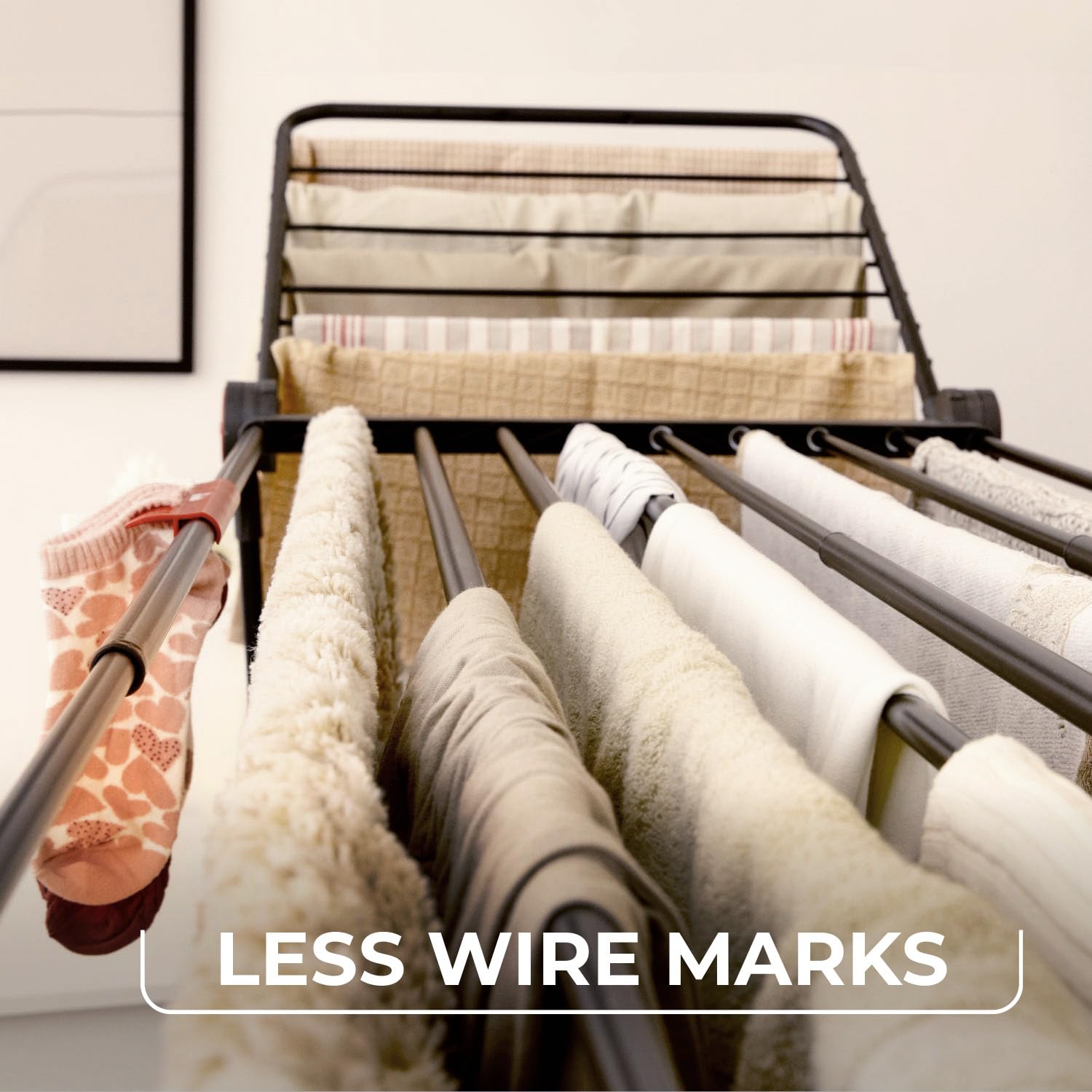 - XXL-Trockenstäbe: Die besonders dicken und widerstandsfähigen Leinen minimieren unschöne Abdrücke und Falten auf Ihrer Kleidung.