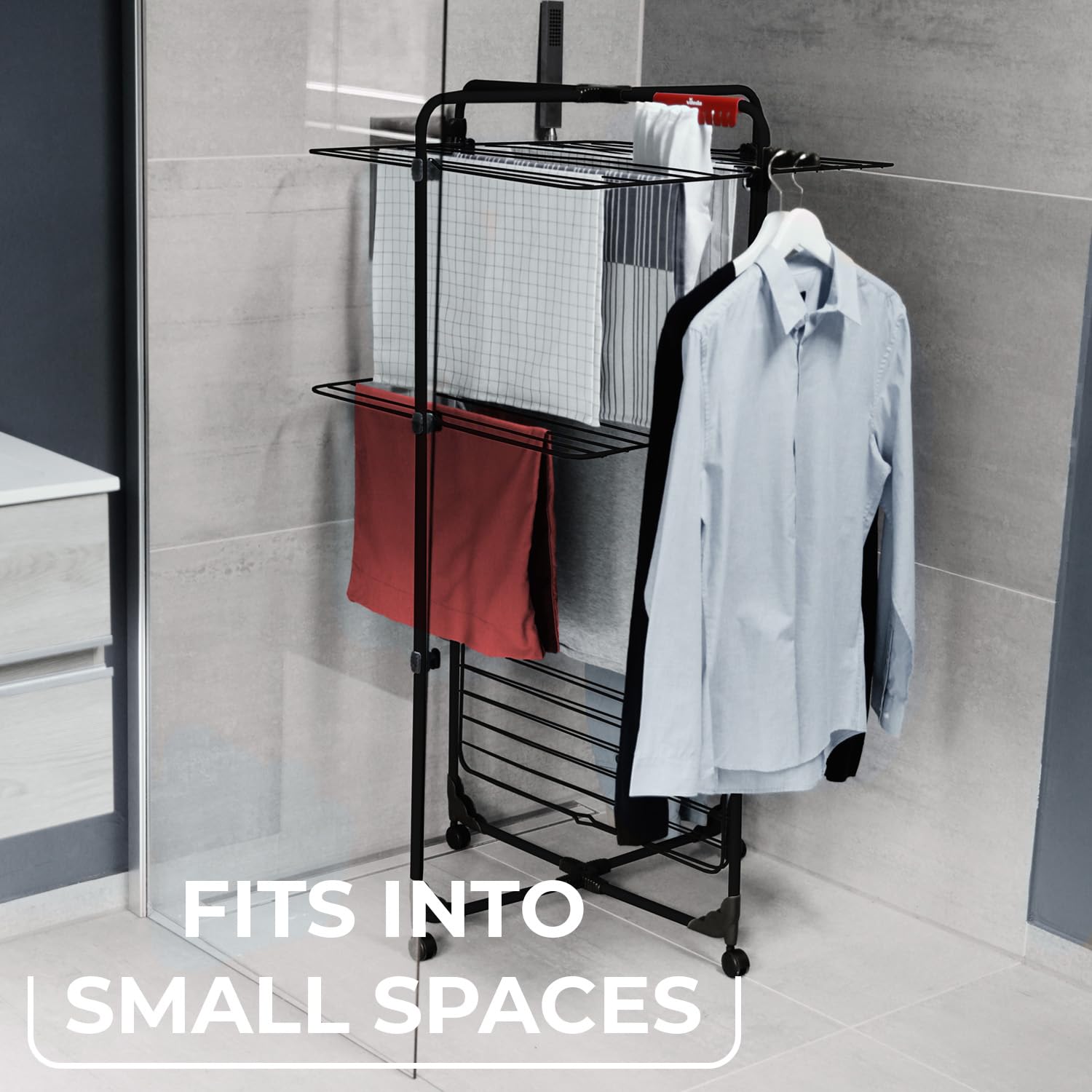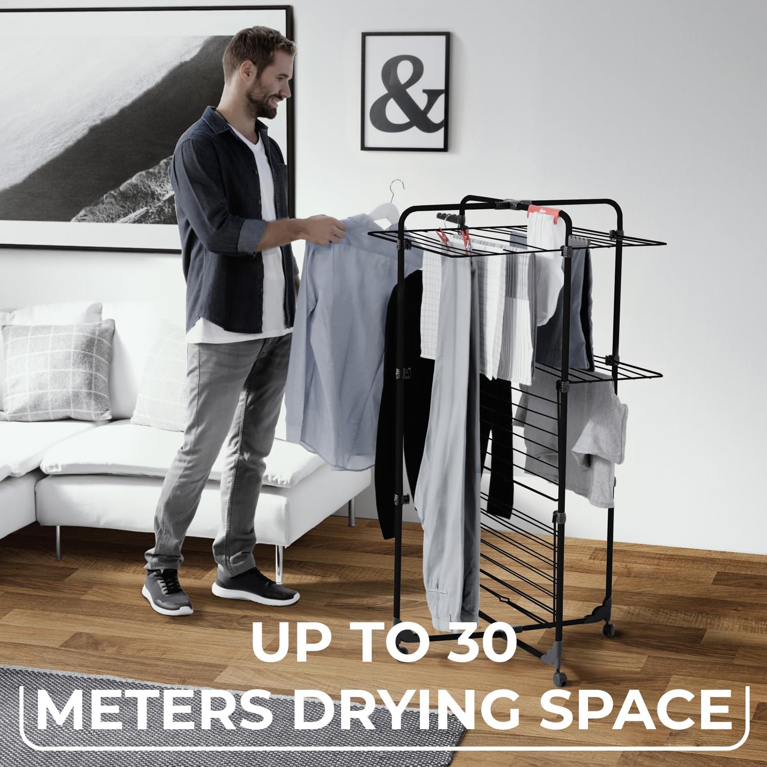 - Grosszügige Trockenfläche: Bietet auf drei Ebenen beeindruckende 30 Meter Leinenlänge, ausreichend für bis zu drei komplette Waschmaschinenladungen.