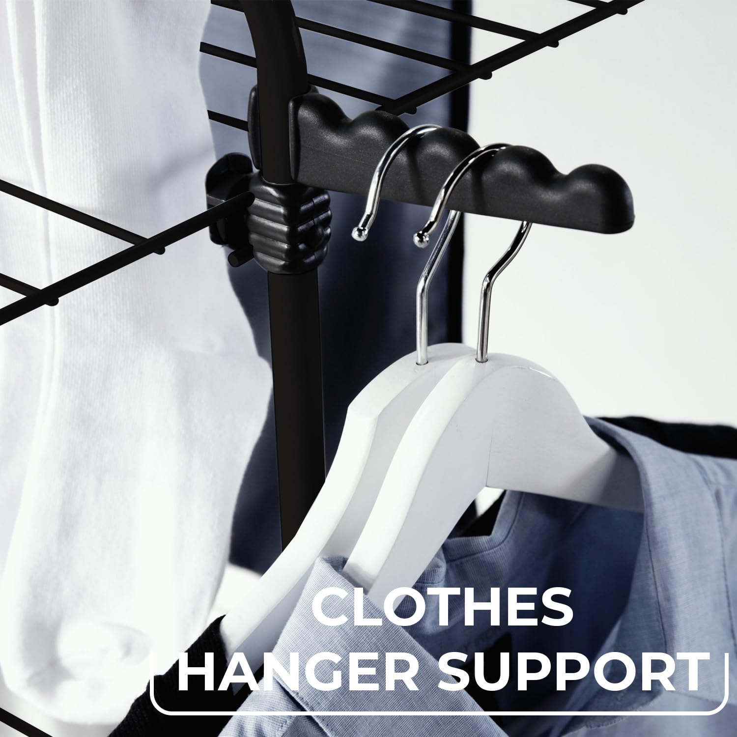 - Durchdachte Extras: Verfügt über zwei Halterungen für Kleiderbügel sowie einen speziellen Aufsatz für kleine Wäschestücke wie Socken oder Unterwäsche.