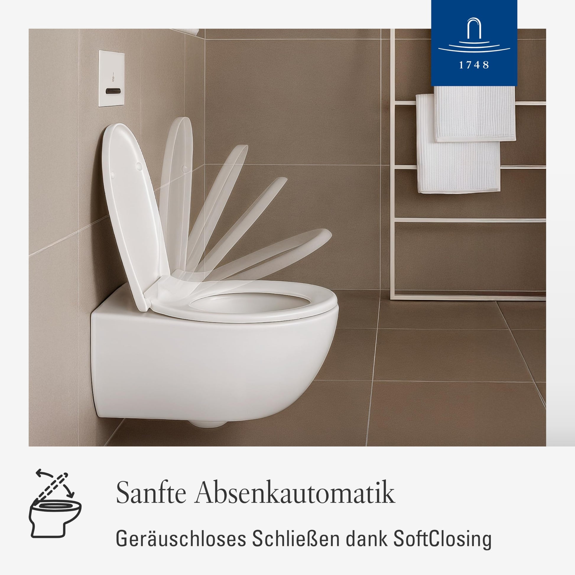 Die integrierte Absenkautomatik, auch SoftClosing genannt, lässt den Toilettendeckel und die Brille sanft und geräuschlos zugleiten. Das verhindert lautes Zuknallen, schont das Material von Sitz und Keramik und erhöht die Sicherheit, insbesondere in Haushalten mit Kindern.