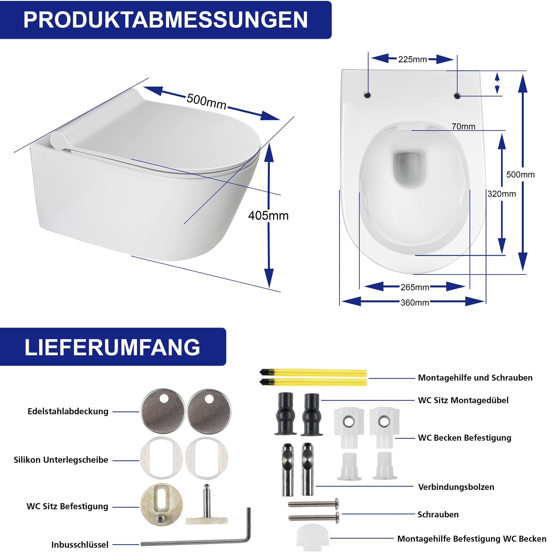 VILSTEIN Hänge WC Spülrandlos Komplettset - mit Absenkautomatik