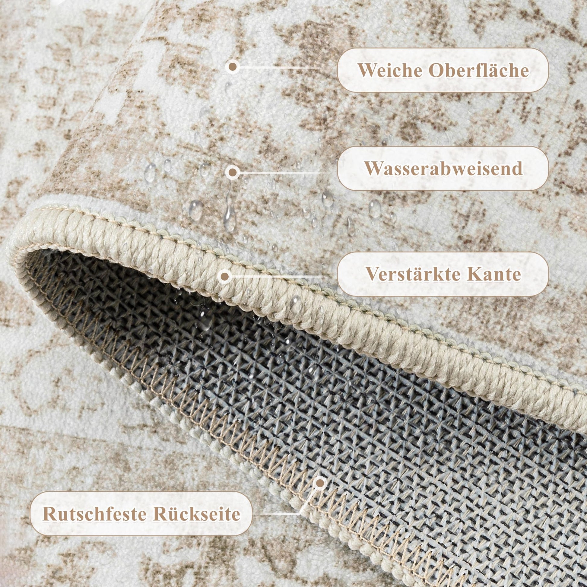 Vintage Hellbraun Waschbarer Kurzflor Teppich 240x300cm Wohnzimmer