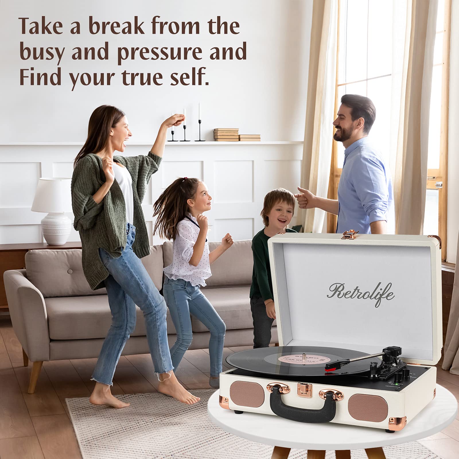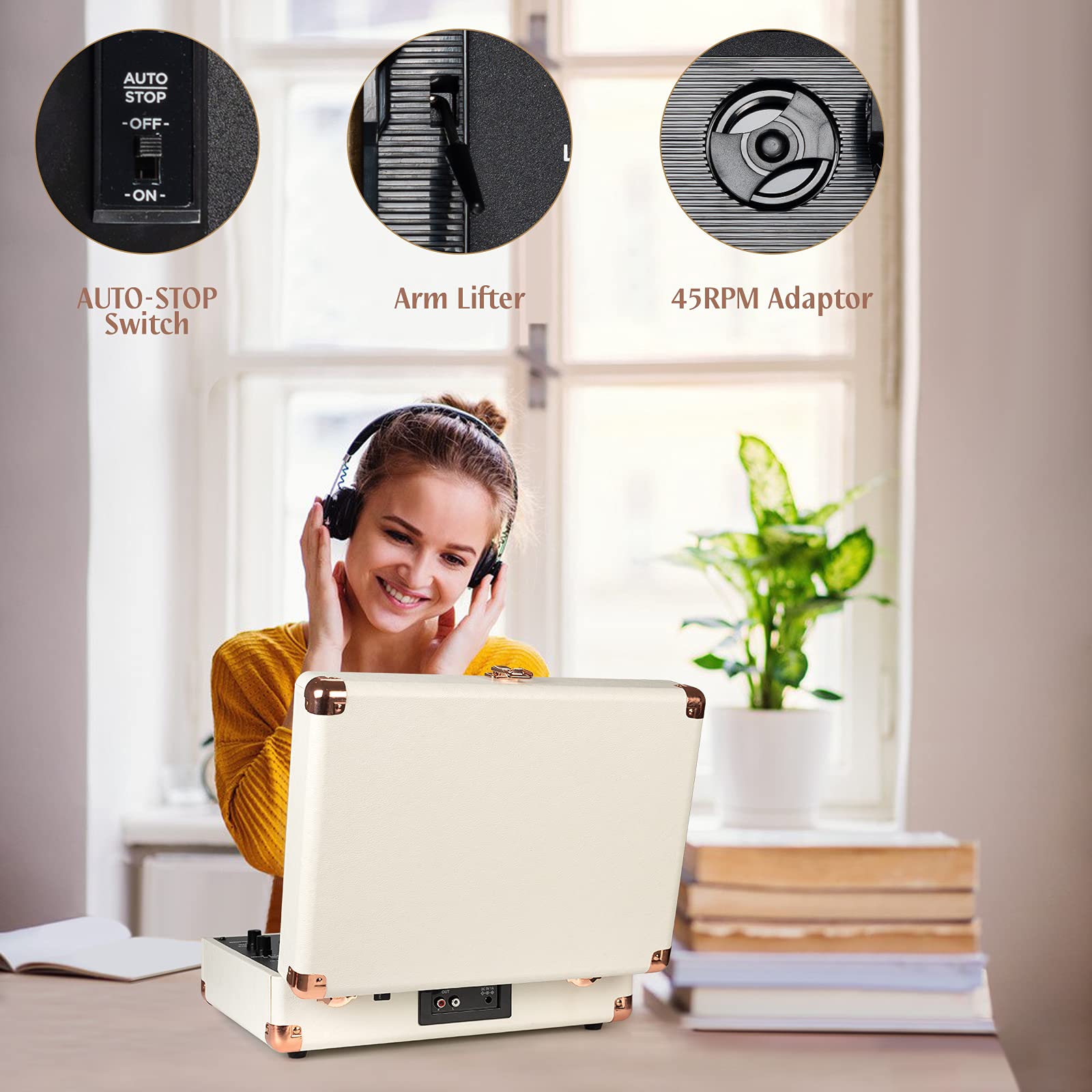 - Benutzerfreundliche Bedienung: Ausgestattet mit einem praktischen Modus-Schalter (Bluetooth/AUX/Phono) und einer Auto-Stopp-Funktion, die den Plattenteller am Ende der Platte automatisch anhält.