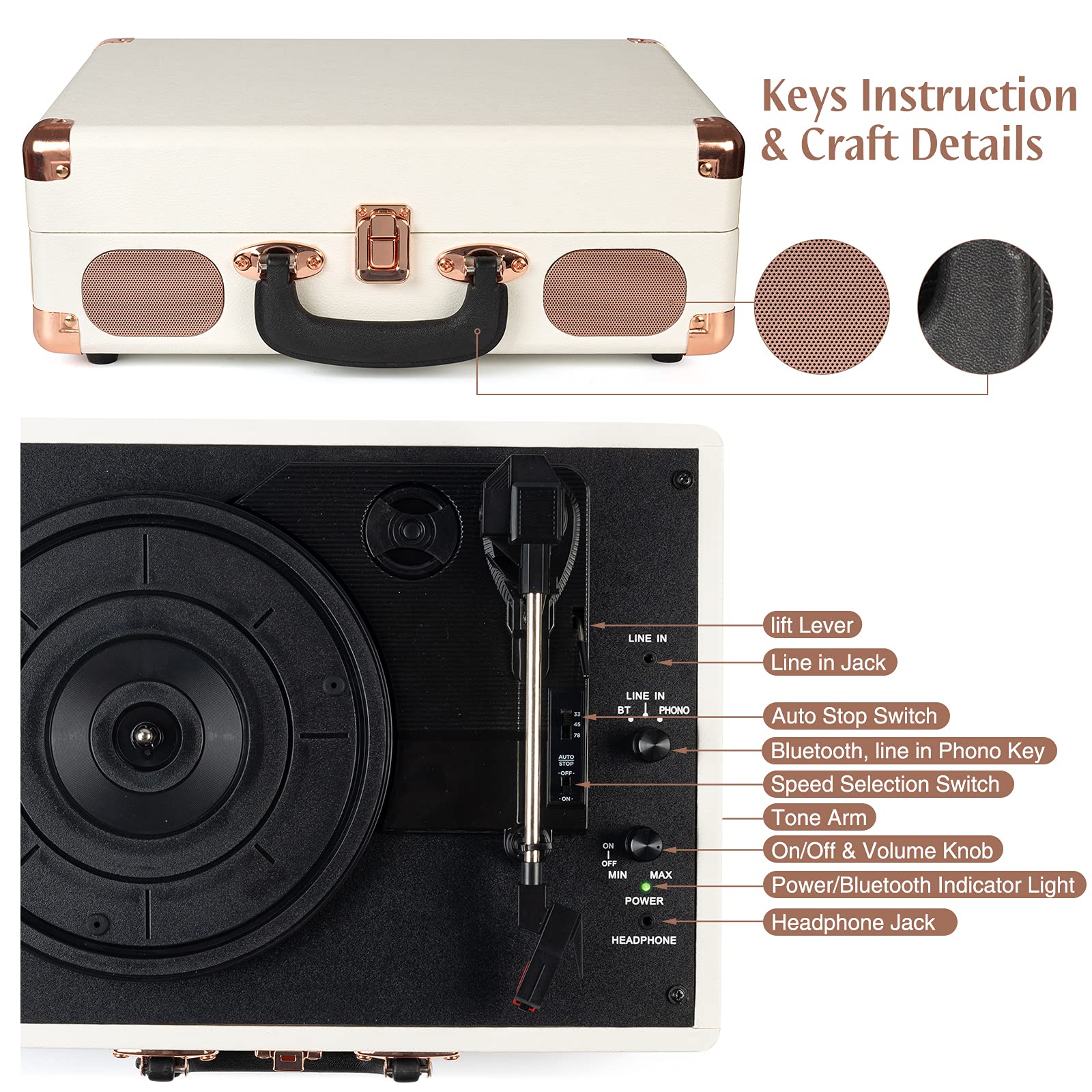 Vintage Koffer Plattenspieler Bluetooth 3-Gang - Vinyl