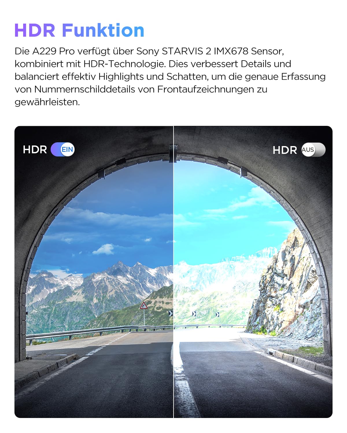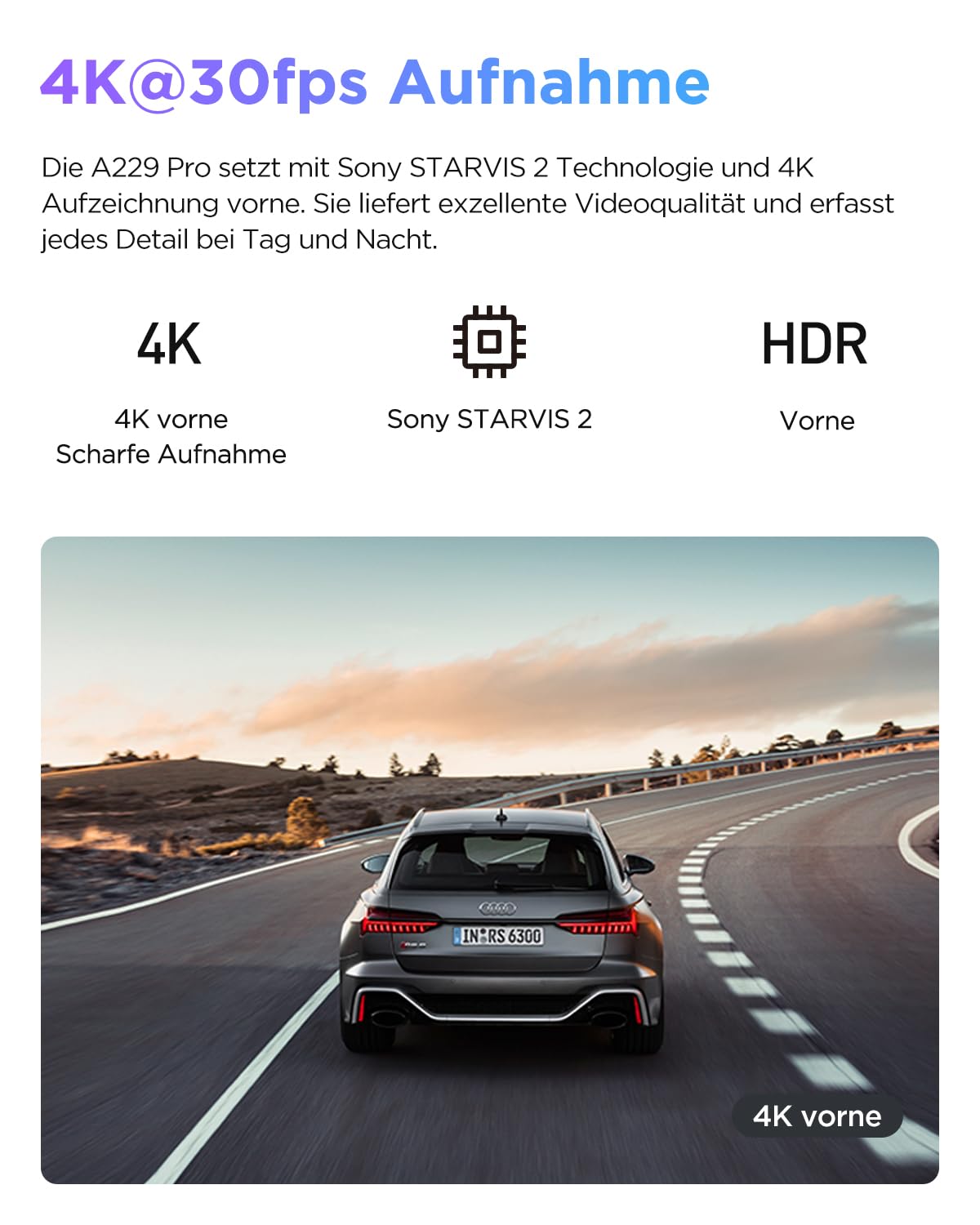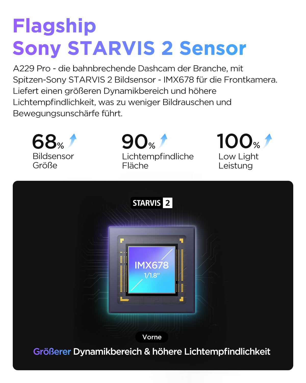 - Revolutionärer STARVIS 2 Sensor: Als eine der ersten Dashcams auf dem Markt nutzt sie den fortschrittlichen IMX678 Bildsensor für eine überlegene Bildqualität bei Tag und Nacht.