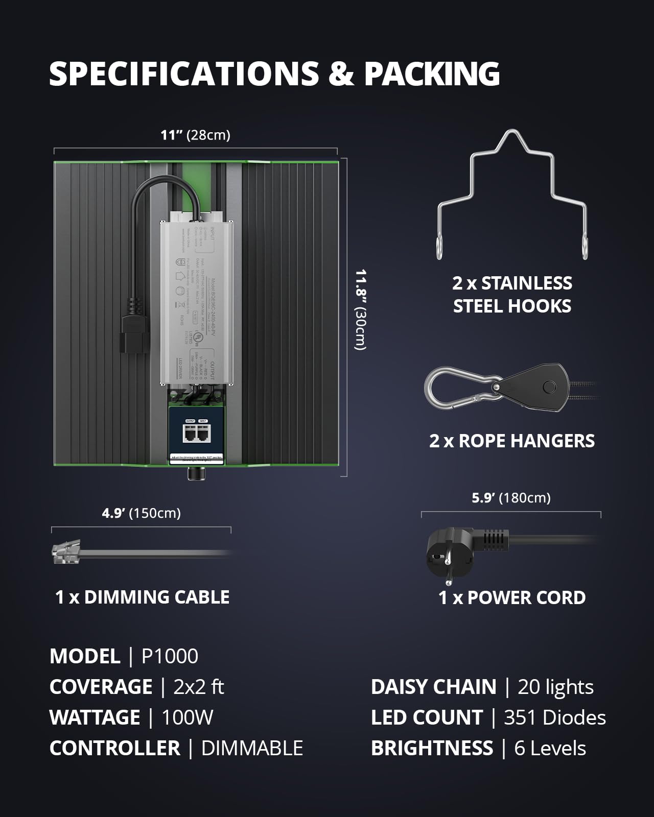 - Praktische Daisy-Chain-Funktion: Verbinden Sie bis zu 20 Lampen miteinander, ideal für grössere Anbauflächen oder den kommerziellen Einsatz.