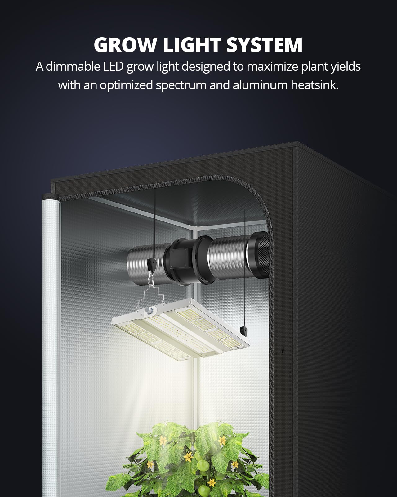 Die spezielle optische Linse bündelt das Licht und lenkt es konzentriert auf Ihre Pflanzen. Dies reduziert Streuverluste an den Zeltwänden und sorgt für eine ausserordentlich gleichmässige Lichtverteilung (PPFD), was zu kräftigerem Wachstum und höheren Erträgen führt.