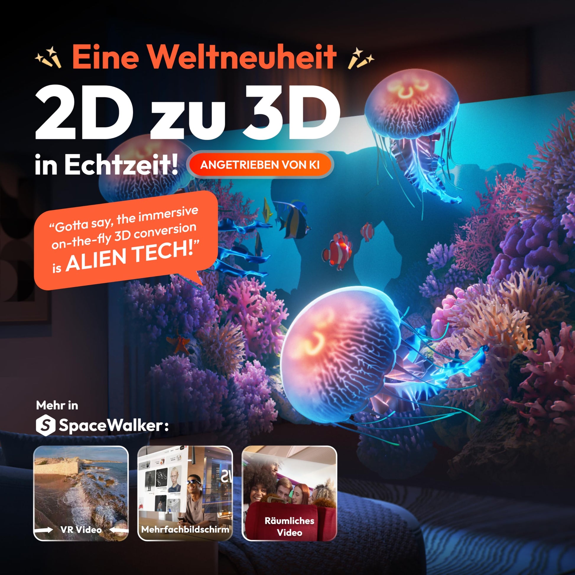 - Erweiterte Funktionen: Mit der kostenlosen SpaceWalker-App schalten Sie native 3D/VR-Video-Unterstützung, räumliche Videos und sogar mehrere virtuelle Bildschirme für mehr Produktivität frei.