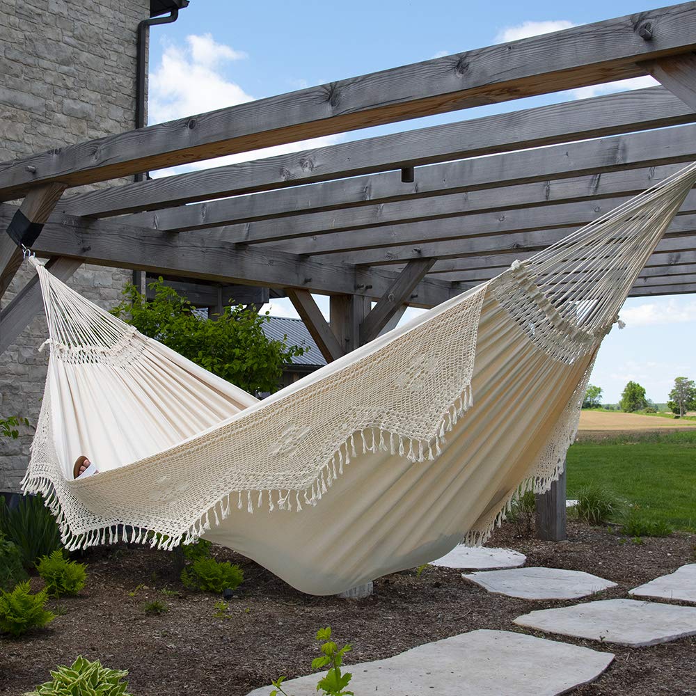 Gönnen Sie sich ein Stück brasilianische Lebensfreude und wiegen Sie sich sanft in den Tag. Diese original brasilianische Doppel-Hängematte im stilvollen Antique-Design ist Ihr persönlicher Rückzugsort für unbeschwerte Stunden.