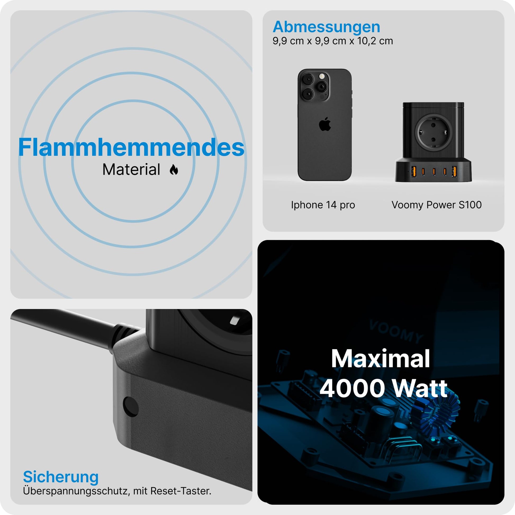 VOOMY Mehrfachsteckdose mit USB Ladestation - 100 Watt