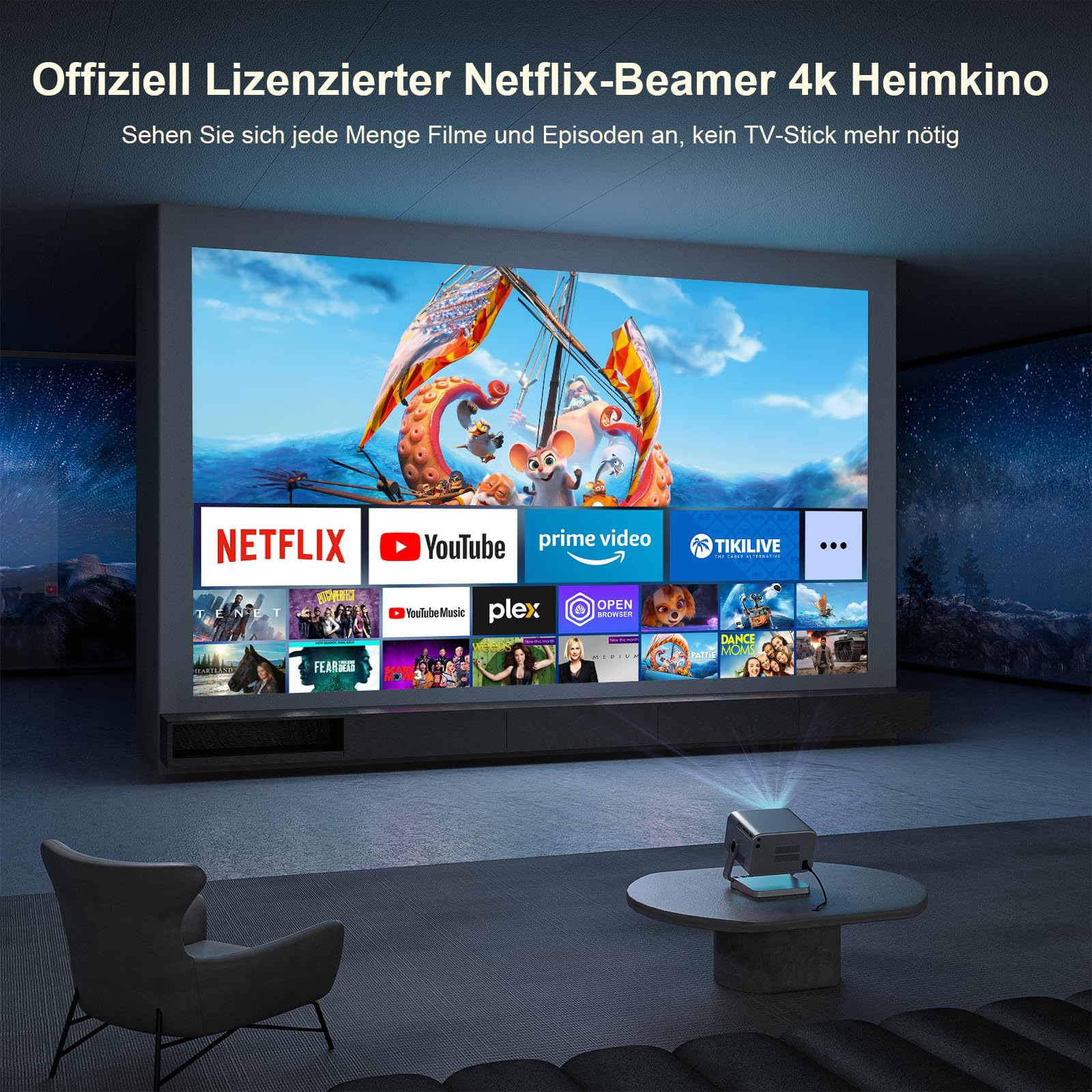 Ja, der VOPLLS M10 Beamer hat ein integriertes Betriebssystem mit offiziell lizenziertem Netflix sowie Zugang zu YouTube und Prime Video. Sie können Ihre Lieblingsinhalte direkt streamen, ohne einen externen TV-Stick oder Laptop anschliessen zu müssen.
