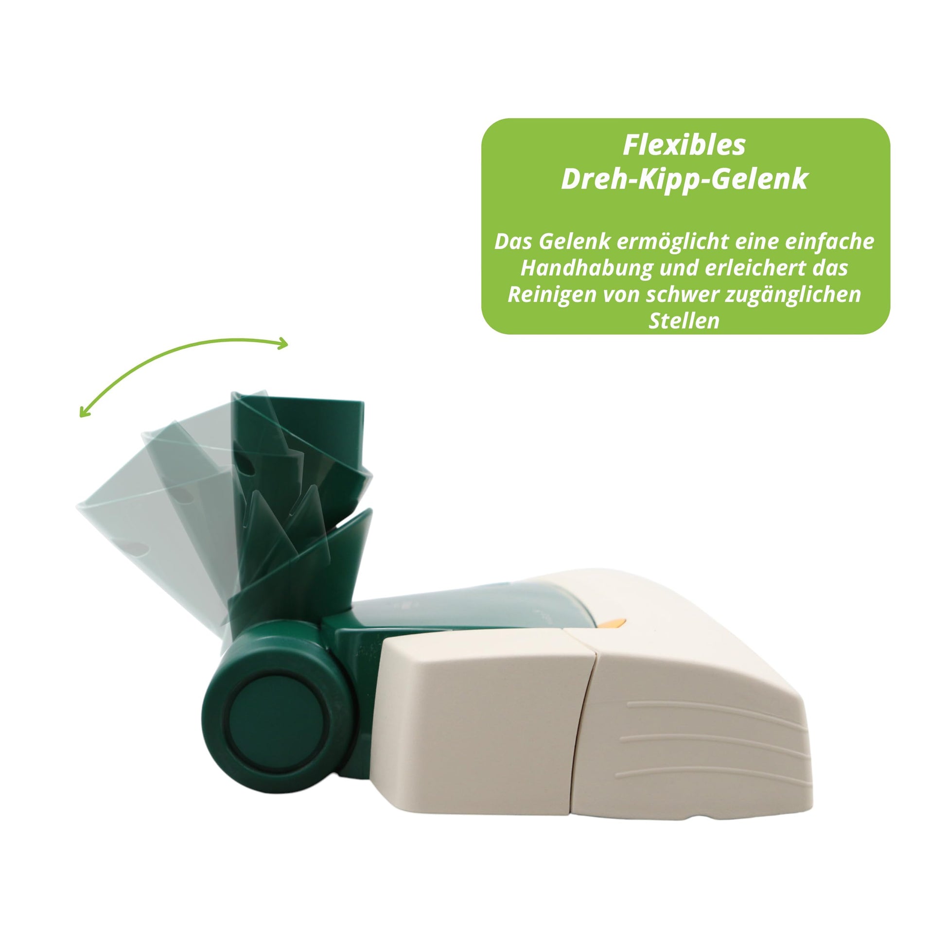 - Automatische Anpassung: Die Bürste passt sich selbstständig der jeweiligen Teppichhöhe an und gewährleistet so stets optimalen Kontakt und eine gleichmässige Schmutzaufnahme.