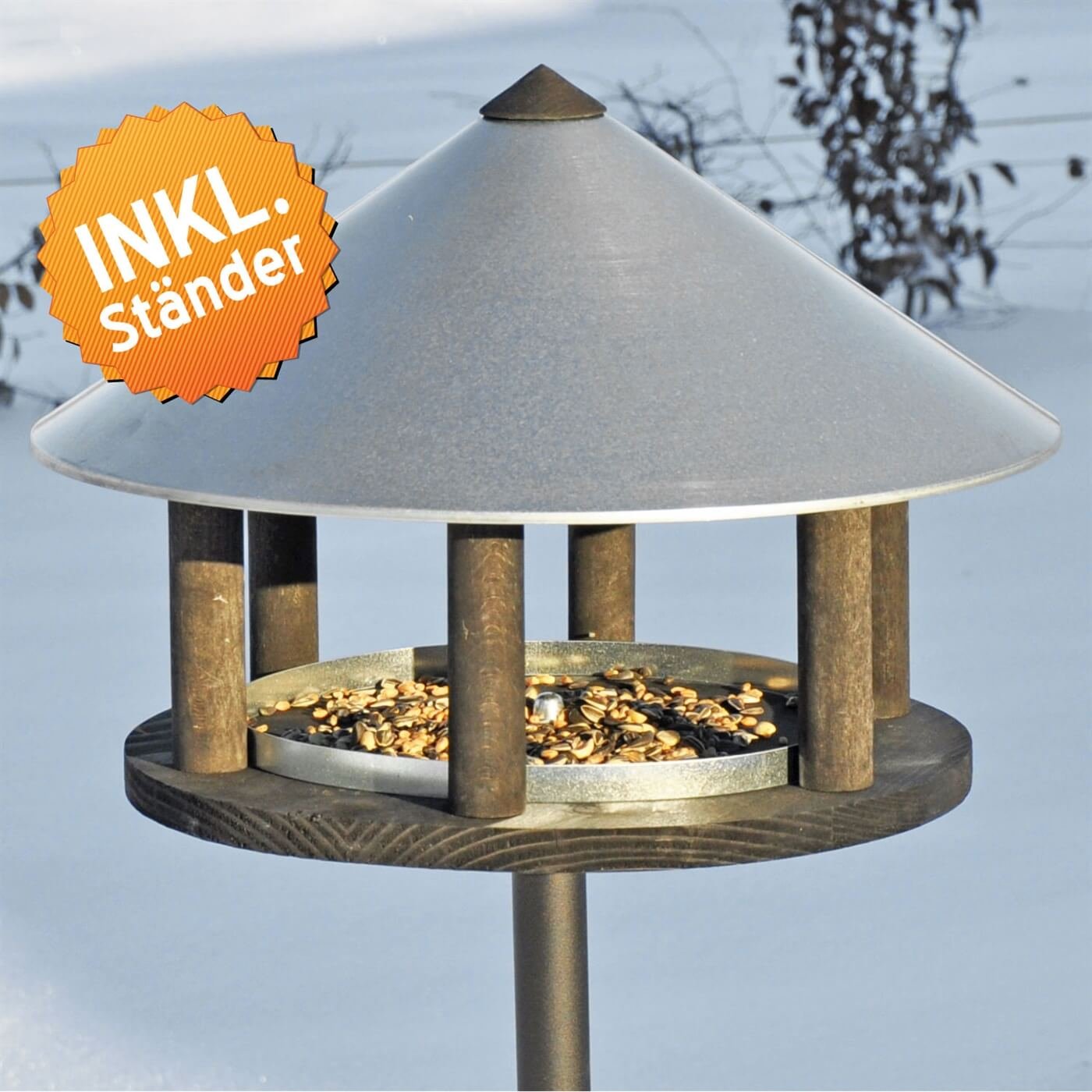 Das Futterhaus besticht durch sein exklusives, zeitloses dänisches Design, das es zu einem stilvollen Hingucker im Garten macht. Eine Besonderheit ist das verzinkte Dach, das durch die Witterung eine charakteristische und edle Patina entwickelt, die jedes Stück zu einem Unikat macht.