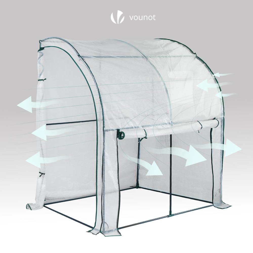 Für eine optimale Luftzirkulation und Temperaturregulierung verfügt das Gewächshaus über eine grosse Reissverschlusstür sowie aufrollbare Seitenwände mit integriertem Moskitonetz. Die Tür ermöglicht Ihnen jederzeit bequemen Zugang und schützt gleichzeitig vor Insekten und Vögeln.