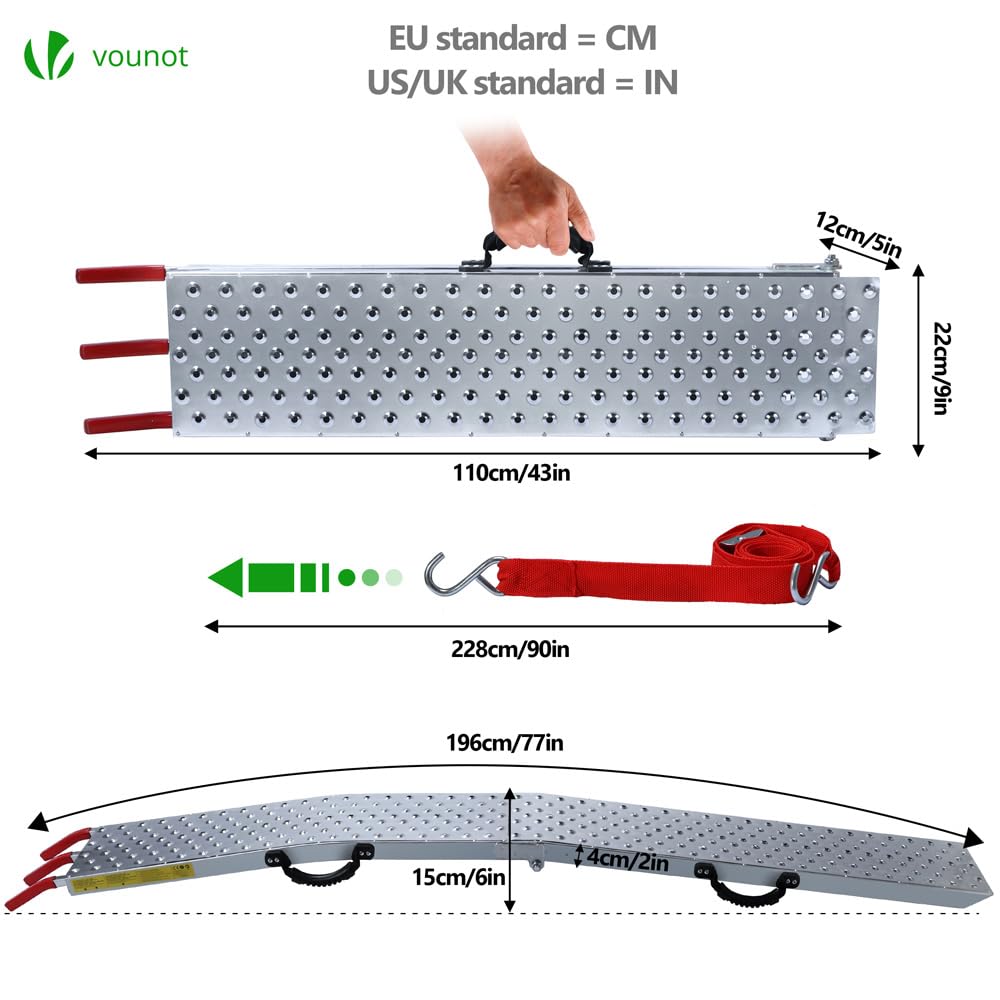 - Sichere Befestigung: Im Lieferumfang sind Sicherheitsgurte mit Haken enthalten, um die Rampen am Fahrzeug zu fixieren.