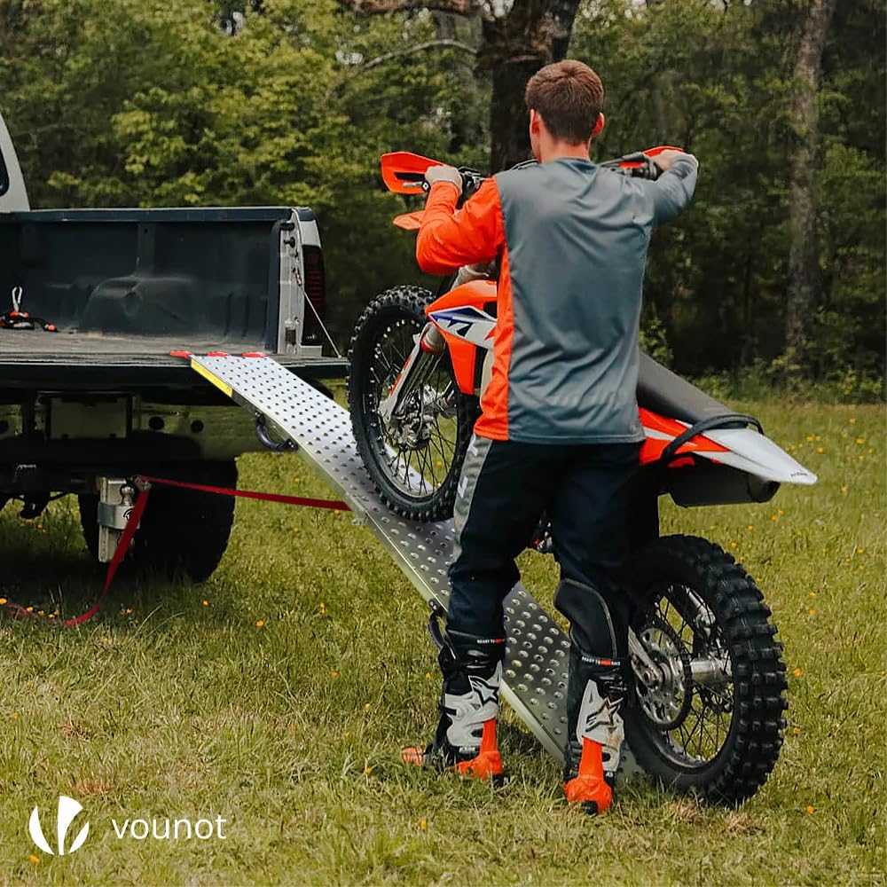 Dieses Set aus zwei faltbaren Auffahrrampen ist die ideale Lösung, um schwere Geräte wie Motorräder, Rasenmäher oder Quads sicher und mühelos zu verladen.