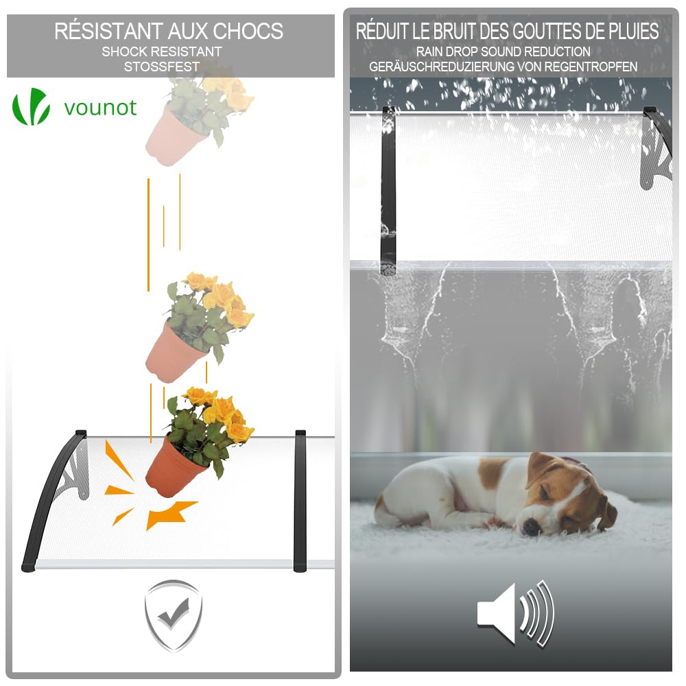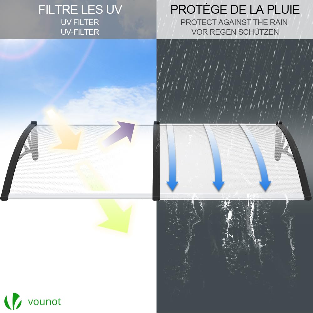 - Umfassender Wetterschutz: Bietet zuverlässigen Schutz vor Regen, Hagel und schädlicher UV-Strahlung, um Ihren Eingangsbereich und Türen trocken und sicher zu halten.
