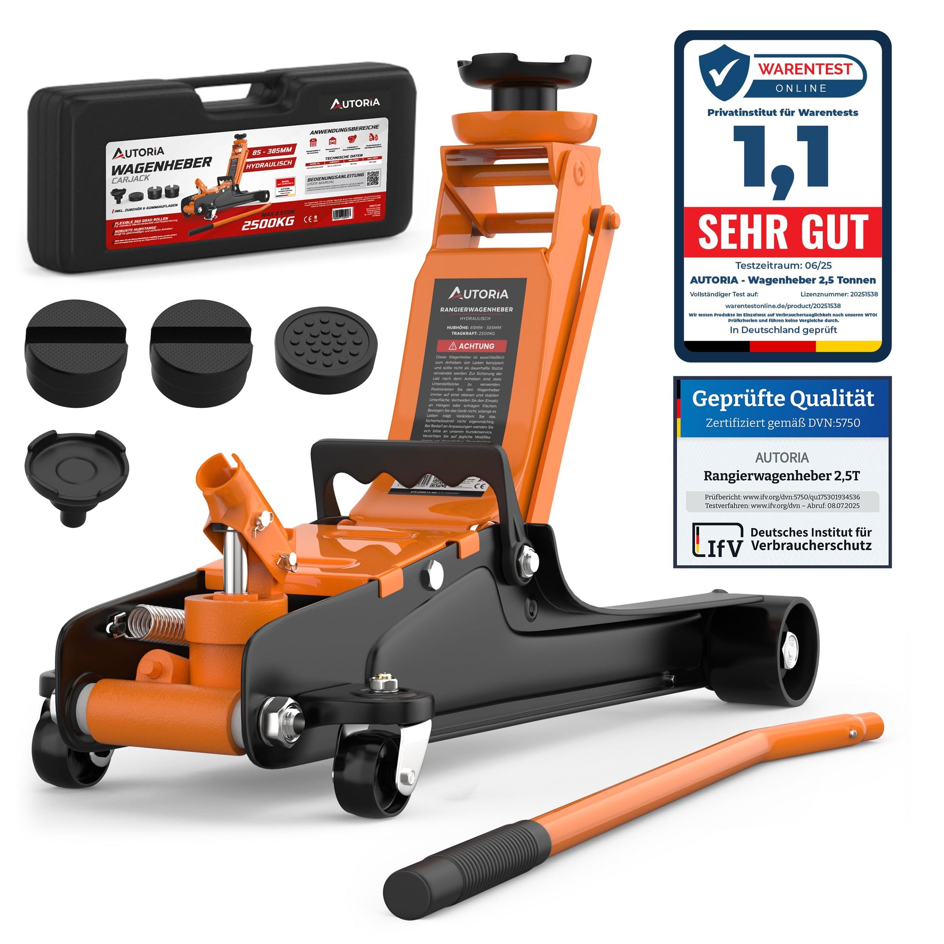 Die durchdachte Konstruktion dieses Wagenhebers macht ihn zum perfekten Allrounder. Seine leuchtend orange Farbe sorgt dafür, dass er in der Garage oder Werkstatt sofort ins Auge sticht und nicht zur Stolperfalle wird. Die mitgelieferten, rutschfesten Gummiauflagen schützen den Unterboden Ihres Fahrzeugs vor Kratzern und gewährleisten einen sicheren Halt.