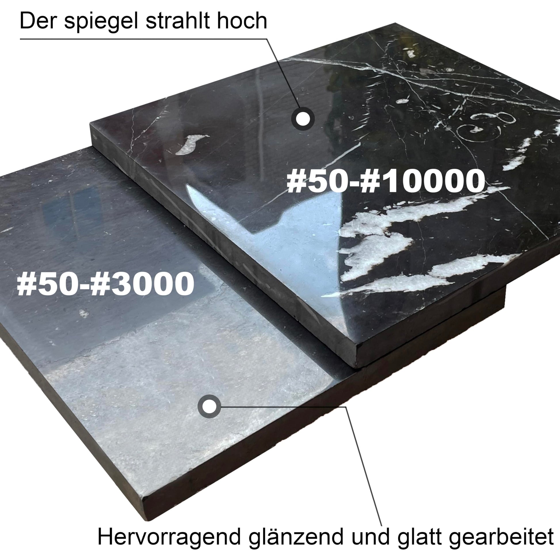 - Flexibler Einsatz: Die Schleifpads sind sowohl für die Nass- als auch für die Trockenanwendung konzipiert. Für ein optimales Finish wird bei feineren Körnungen (ab 400) die Nassbearbeitung empfohlen.