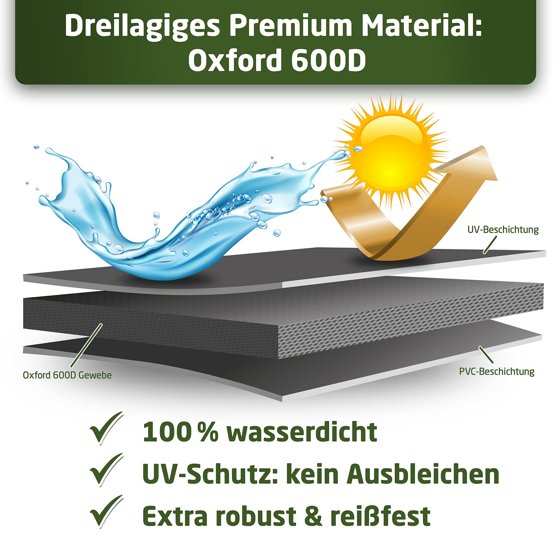 - Wetterfest & UV-beständig: Die Abdeckung ist winterfest gegen Frost und Schnee und schützt dank UV-Beschichtung vor dem Ausbleichen durch die Sonne.