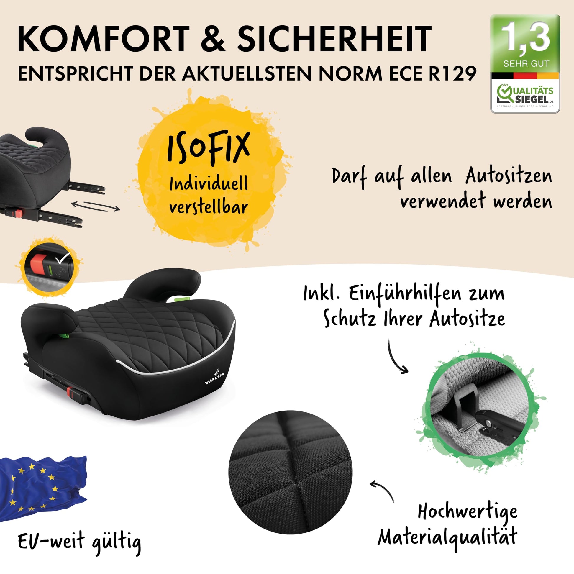 WALSER Andy Kindersitzerhöhung ISOFIX - 125-150cm Schwarz